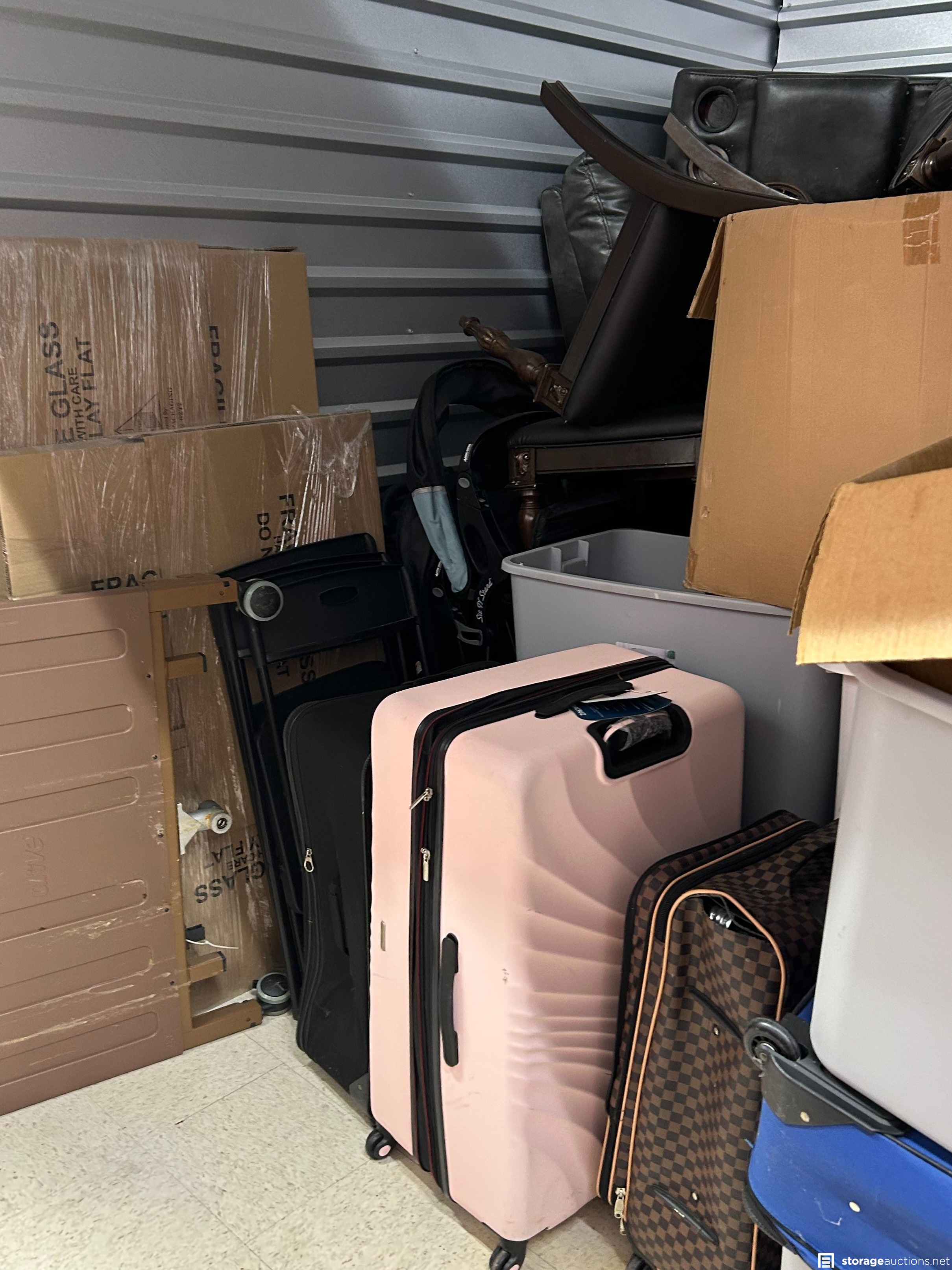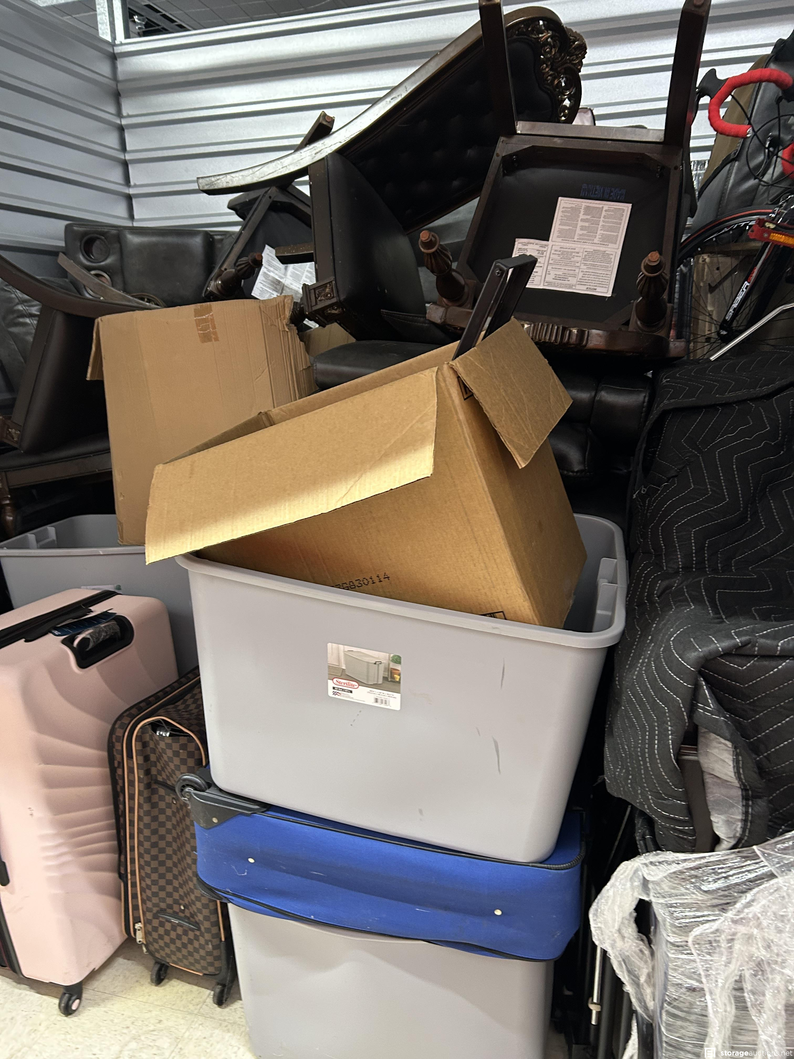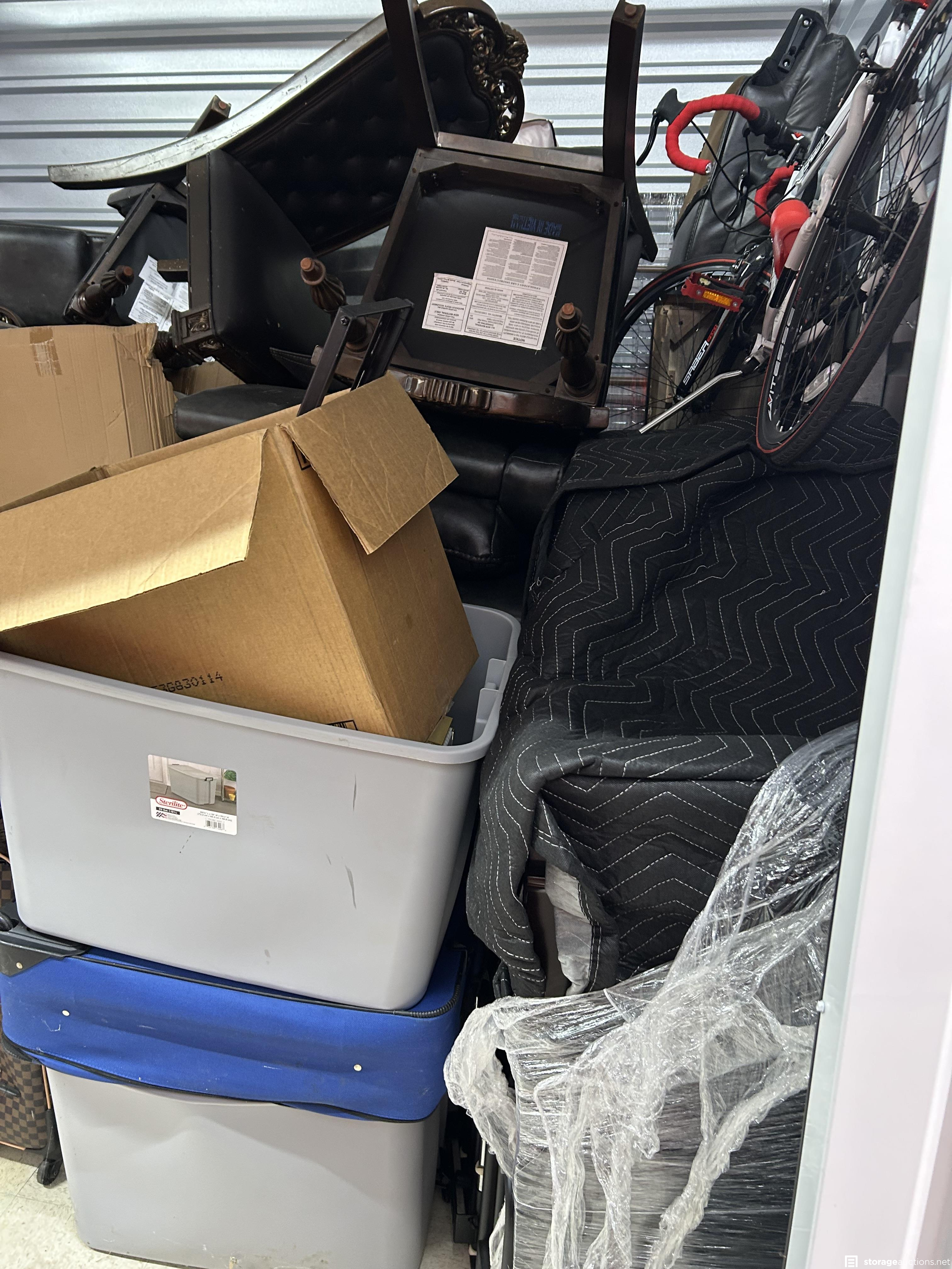 This unit has bike, chairs, boxes, totes, suitcases