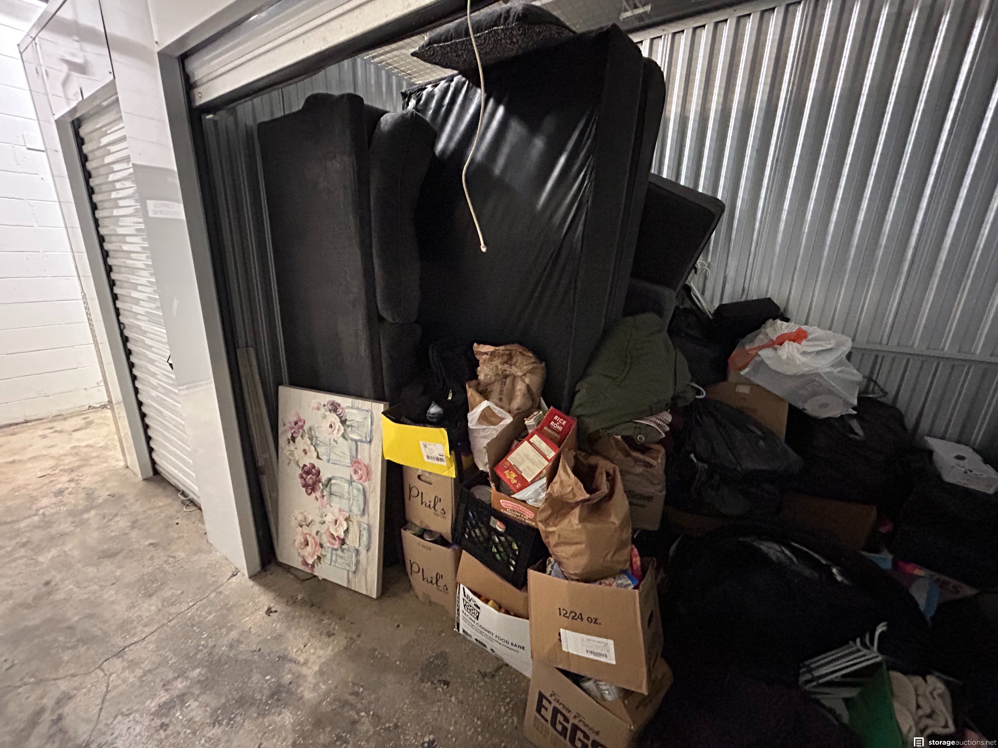 Unit may contain the following items and/or not limited to: misc household furniture and items, misc boxes with items, misc boxes with clothes, misc containers with clothes