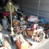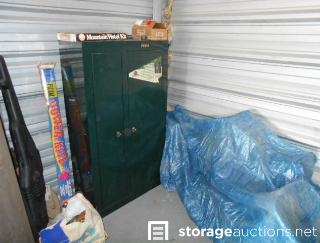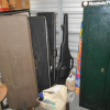 Large unit filled with misc houseware, western wear work clothes, rifle cases, gun locker, misc tools.