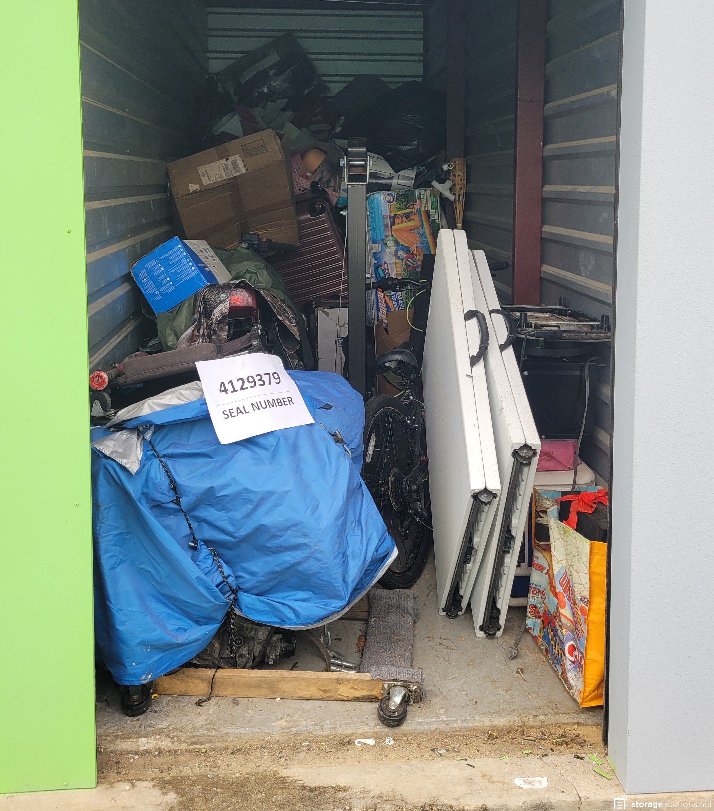 Additional Terms: All units must be paid for at the time of sale. Credit card and Money Orders will be the only forms of payment accepted. No checks or Cash. No one under the age of 18 is allowed to attend the sale. Each person attending must agree to follow all Rules and Regulations of the sale. The landlord reserves the right to bid at the sale. All purchased goods are sold "as is" and must be removed by 5:00 p.m. on the day following the sale. Buyers must provide a current, original or a photocopy of their original resale permit at time of sale in lieu of sales tax. This sale is subject to cancellation in the event of settlement between landlord and obligated party