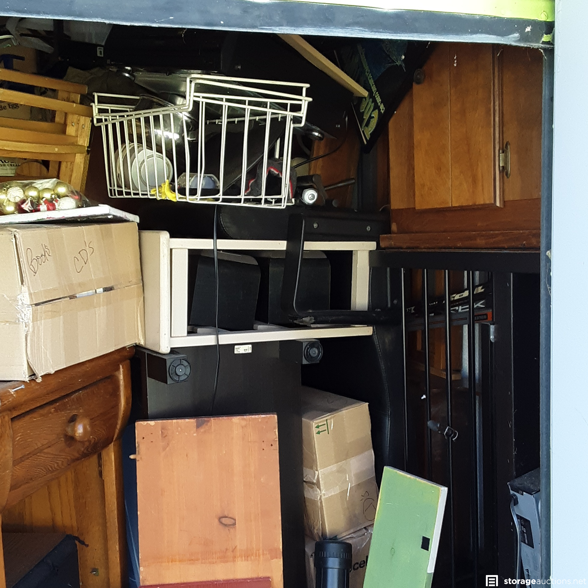 Household goods, clothing, furniture, speakers, sporting goods.