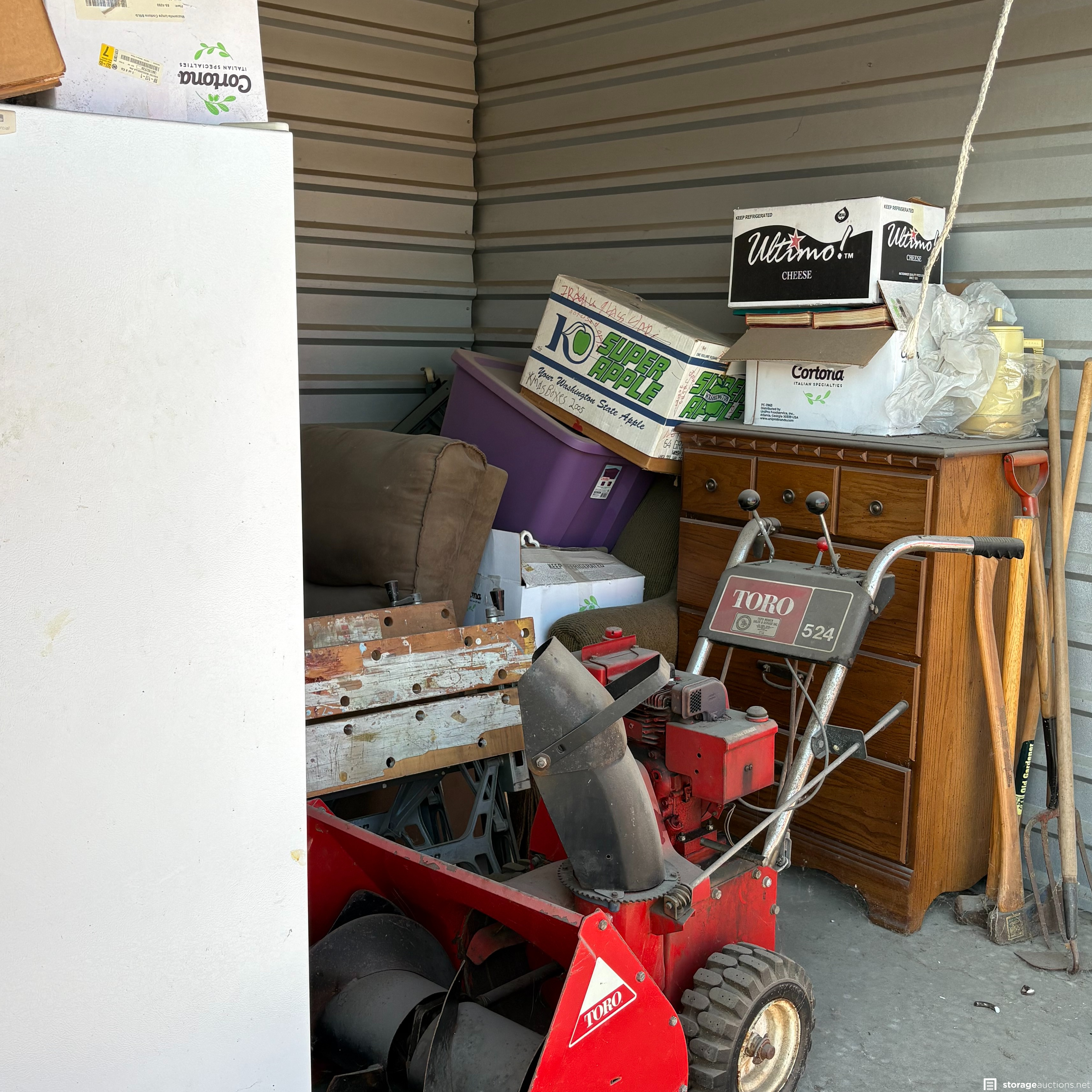 This unit has snow blower, chairs, dresser, mattress, freezer, tools