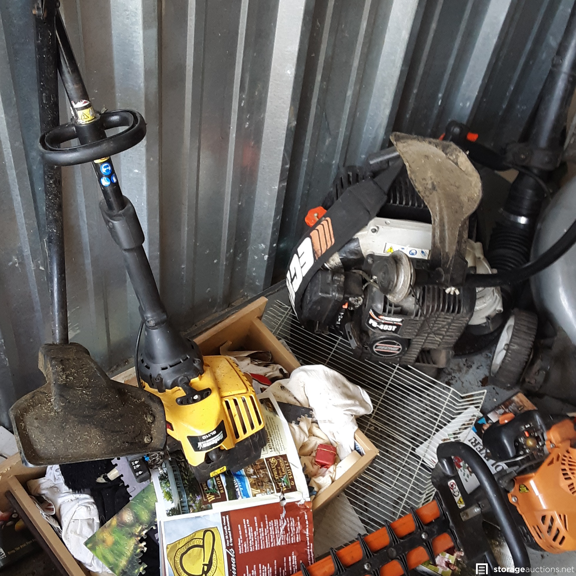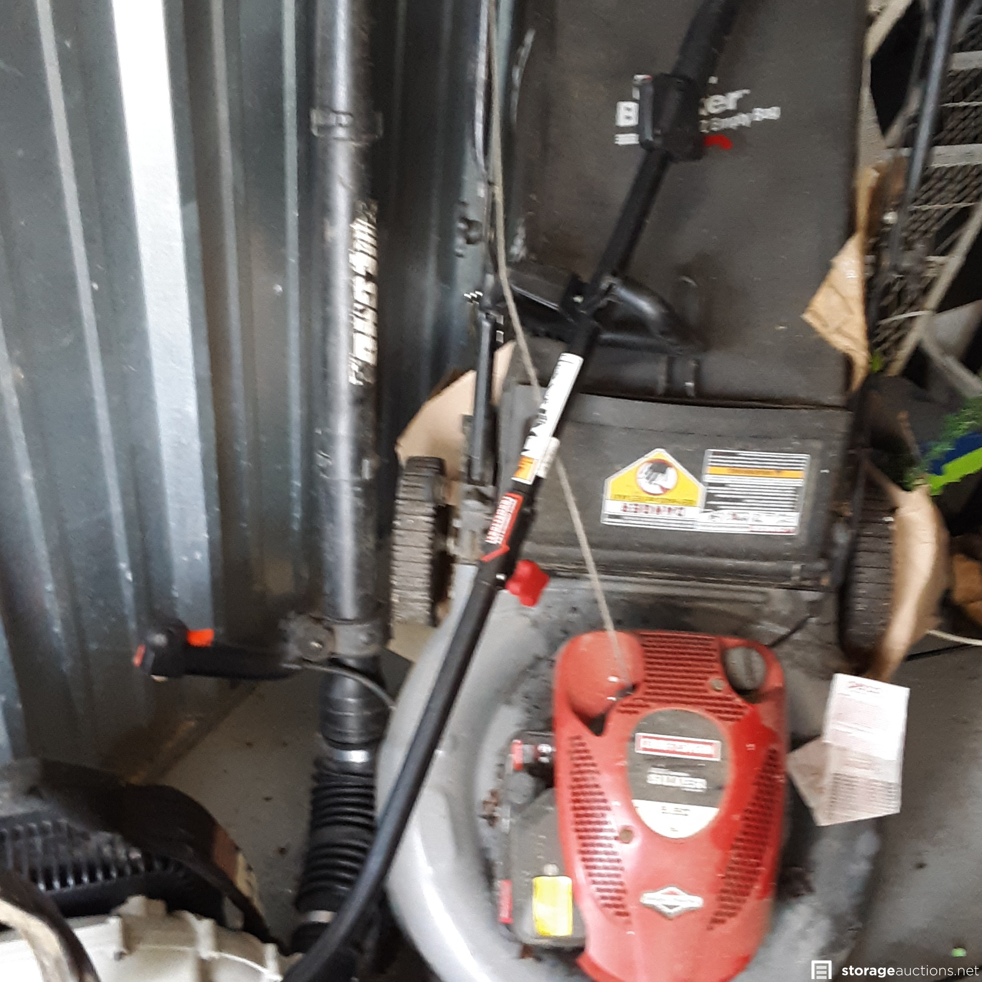 Household goods, Landscaping tools include: Craftsman gas Lawn mower, Craftsman Gas Weed wacker, Echo weed wacker and gas hedge trimmer. And Echo back- pack large hose gas blower. Bicycle, furniture, clothing. Toys including old fashion train track, with train. Other stuff.