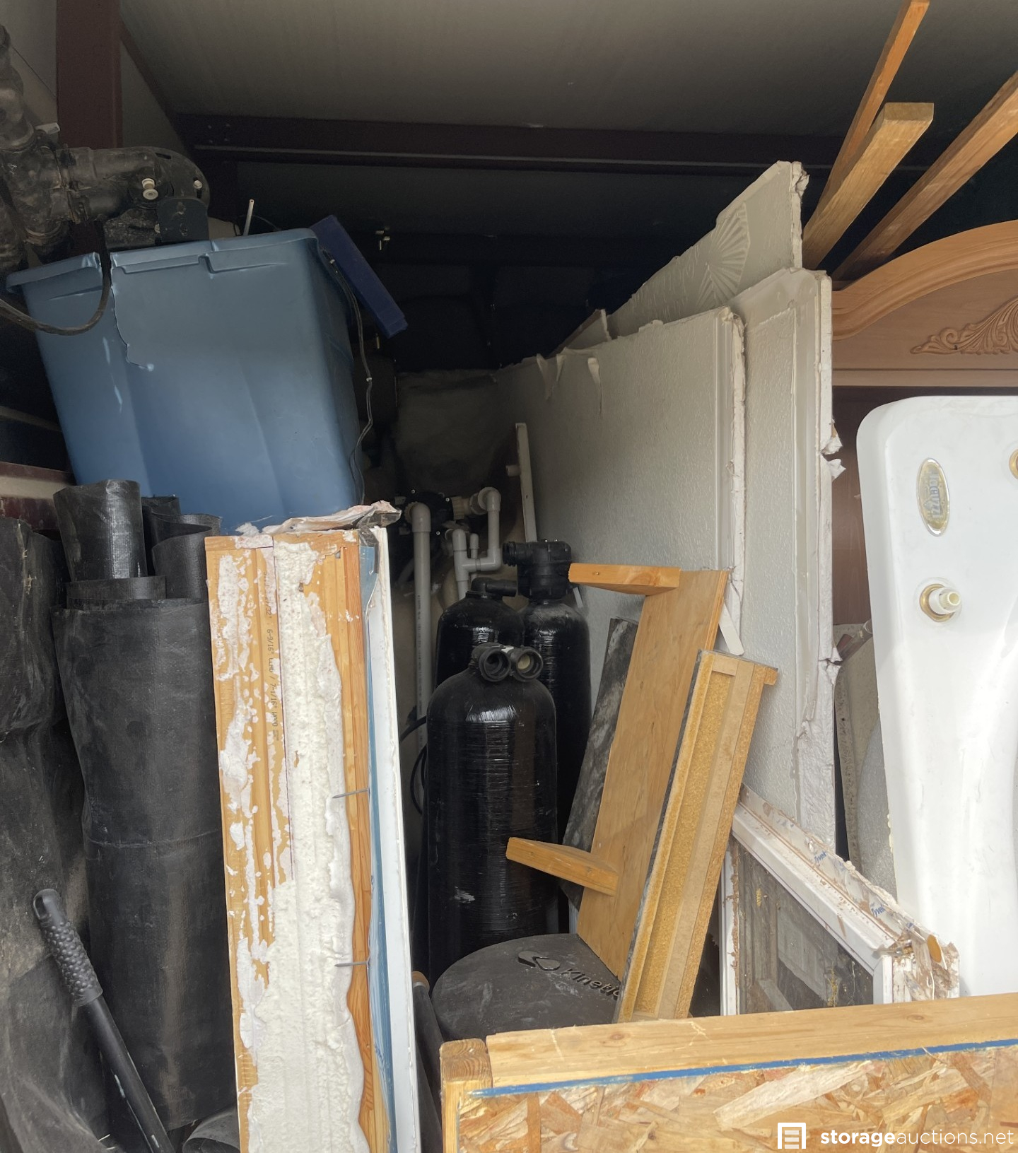 Jacuzzi bathtub, framed window sills & door frames, entertainment center, and miscellaneous construction materials
