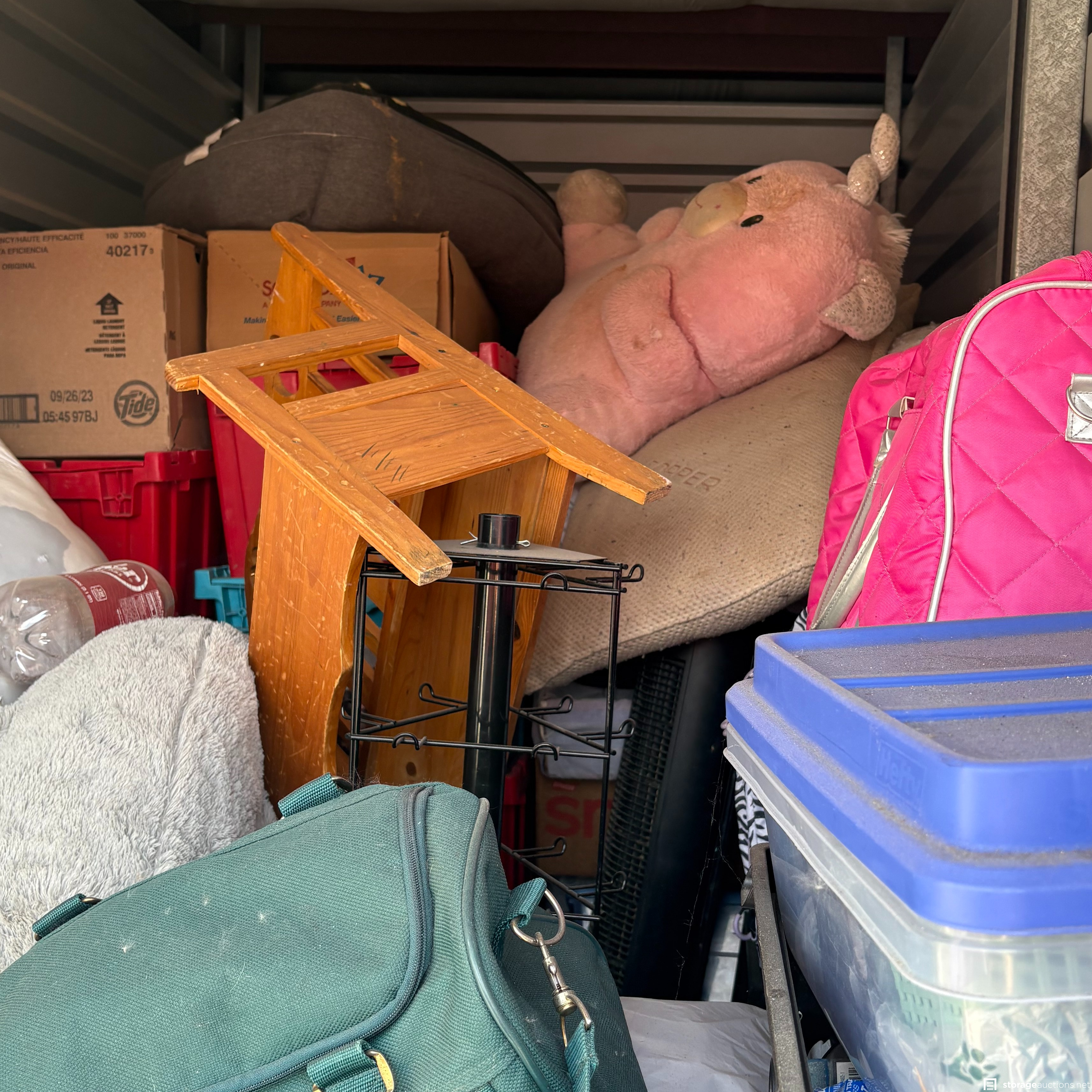 This unit has bags, stuffed animals, totes, kids stuff