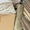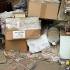 Television, bed frame, headboard, mattress, end tables, books, kitchen utensils, baby bouncer, Colliers Encyclopedia, microwave and misc boxes of unknown contents