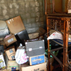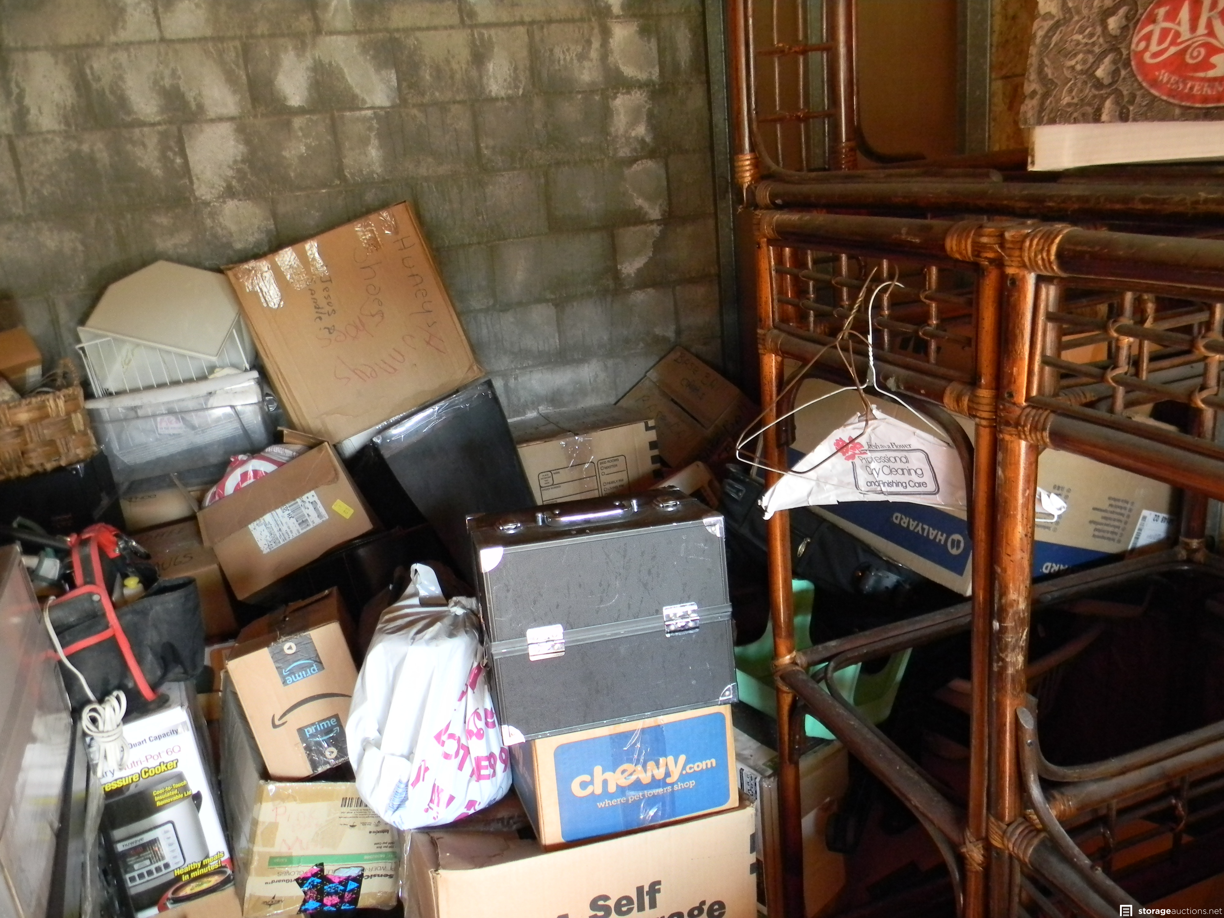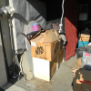 ELECTRIC GRILL, SOFA, DRESSER WITH MIRROR, FILE CABINET, MICROWAVE, 25+ CARDBOARD BOXES, WICKER TYPE SHELVES, LAREDO BOOT BOX SIZE 71/2, DRESSERS, CLEANING SUPPLIES, CABINETS, FULL SIZE BOX SPRING, SAFETY BED RAILS, FLOOR LAMP, TOASTER OVEN, 3.5 GALLON AQUARIUM, LUGGAGE, GRANNY CART, IRONS, OTHER MISCELLANEOUS HOUSEHOLD ITEMS.