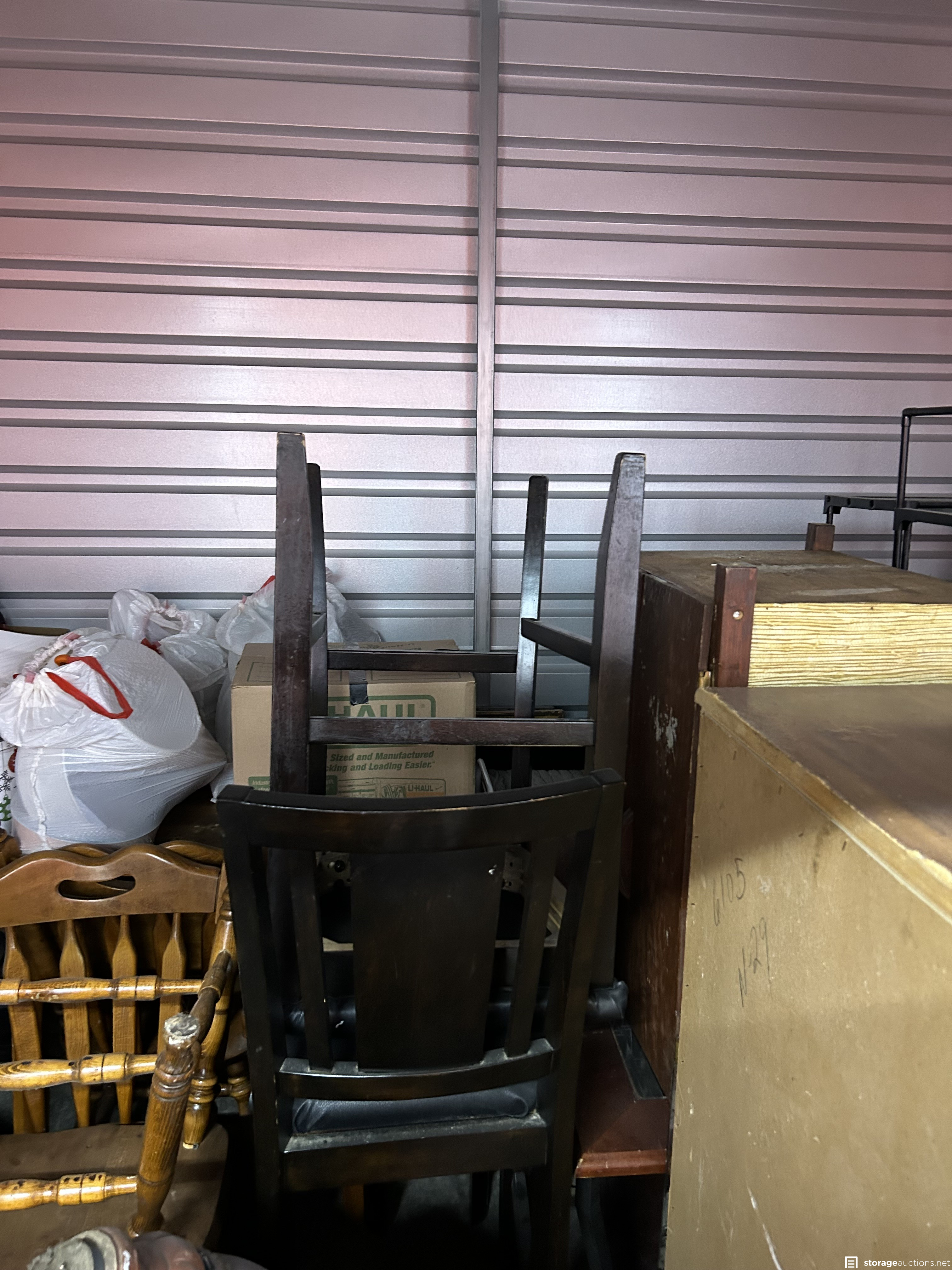This unit has chairs, dresser, totes, bed frame