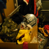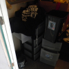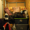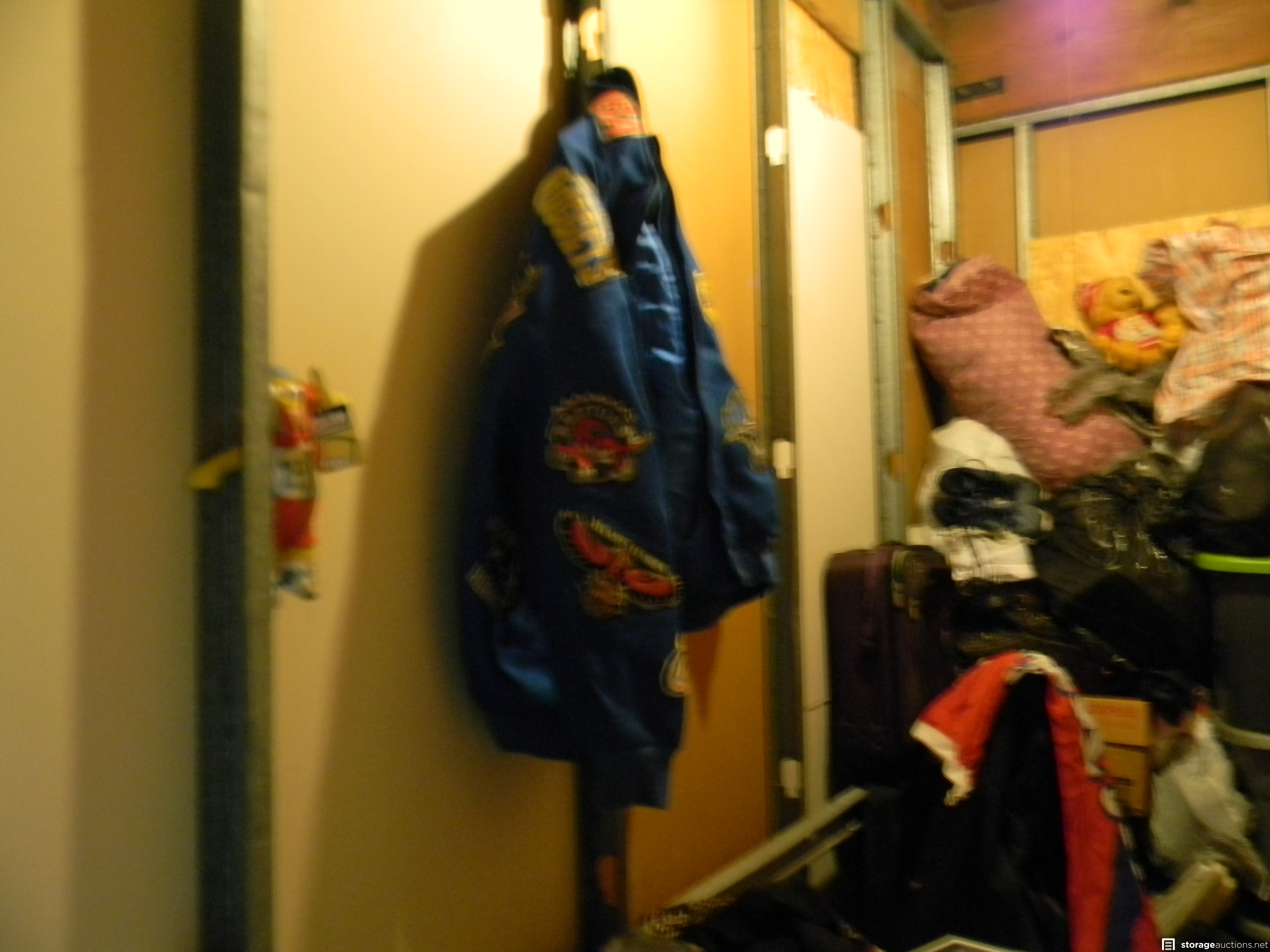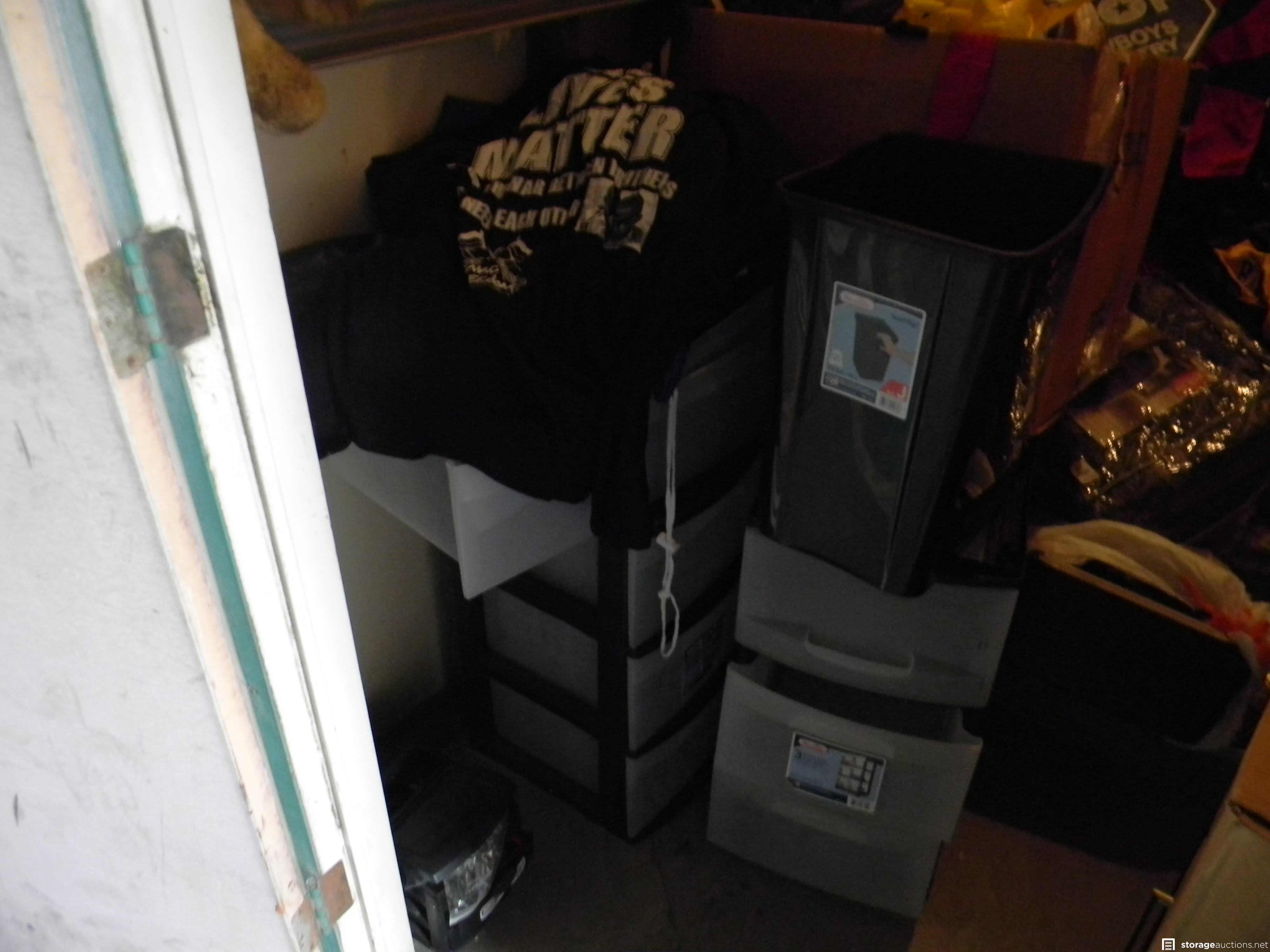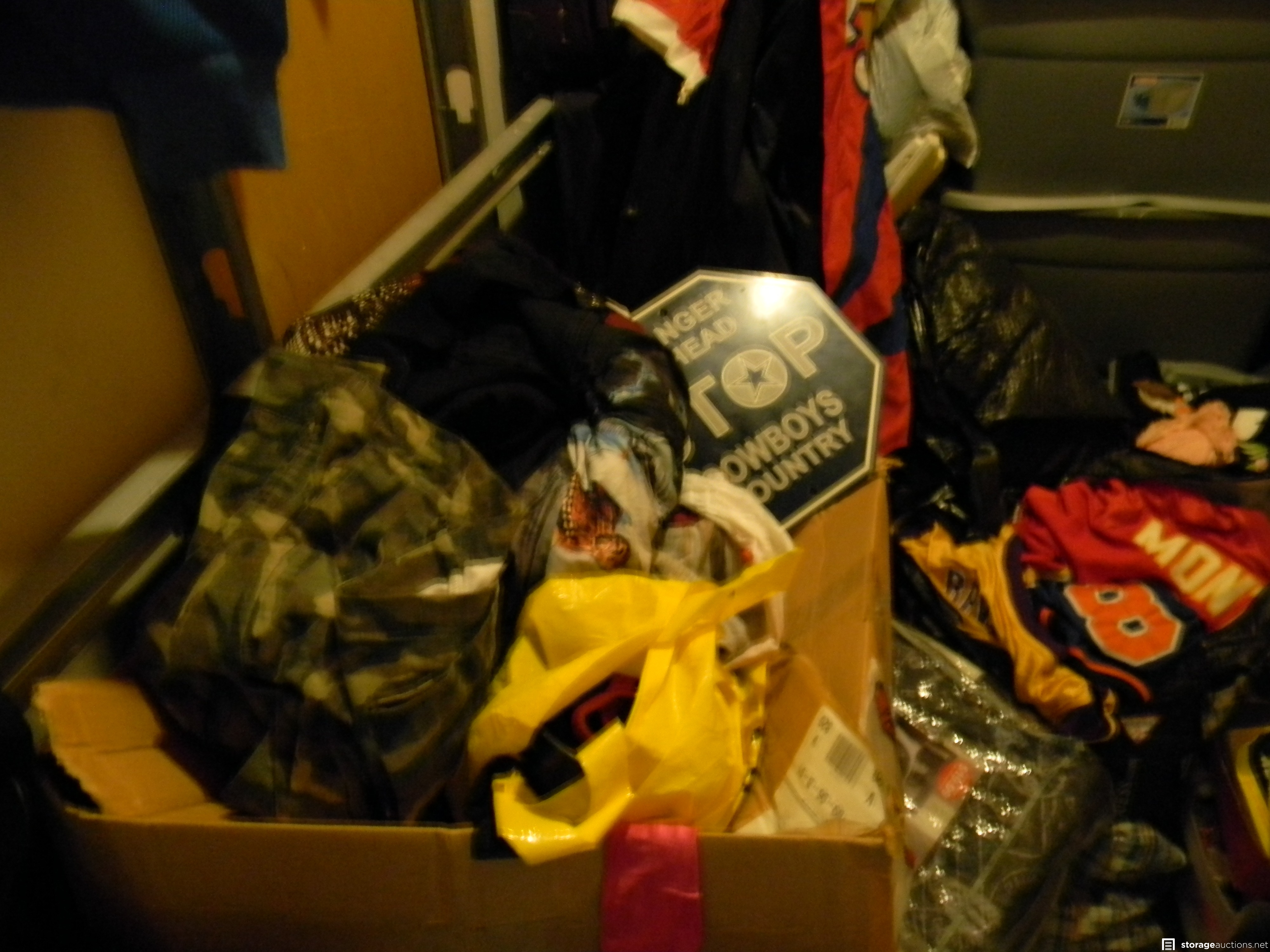 PRO JERSEY’S, PLASTIC FILE CABINETS, “LA” SPORTS JACKET, 4 PLASTIC BINS, SHOE BOXES, SIDE TABLE, SPORTS HATS, SHOES, PLUSHIES, BED IN A BAG, CLOTHING