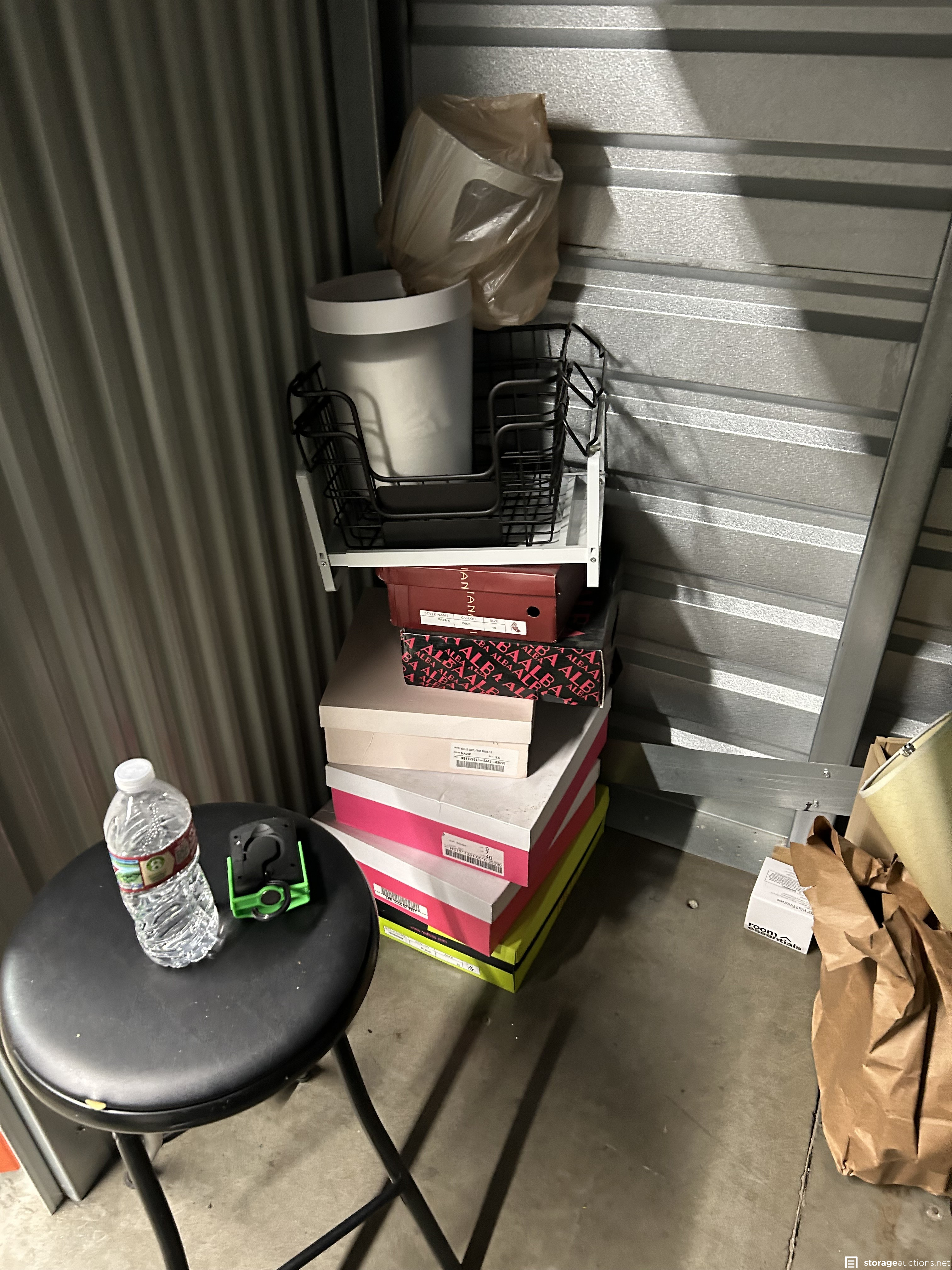 This unit has totes, boxes, stool, mattress
