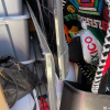 TOTES, COUCH, 2 TVS, STOOL, BROOMS, LARGE MIRROR, BOXES, MISC ITEMS