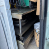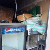 misc totes, restaurant equipment, cooler, chairs, tables