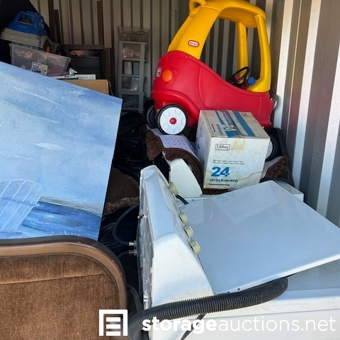 Unit appears to contain: Washer/dryer set. Living room and bedroom set. Misc. items