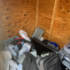 MICROWAVE, SUITCASE, CLOTHING, TOTES, TV, PRINTER, TOASTER, SHELVING, MISC ITEMS