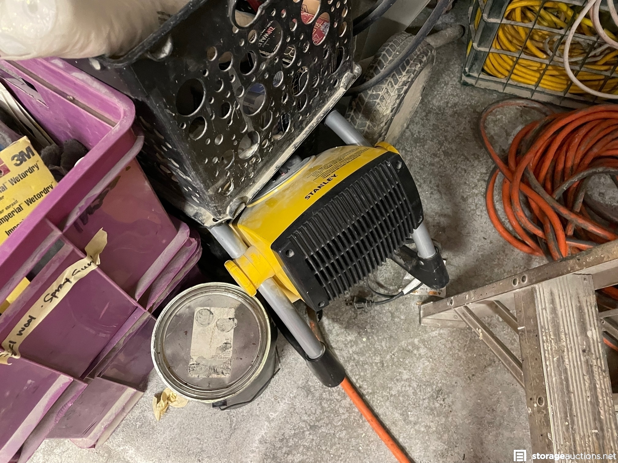 LADDERS, PAINTING SUPPLIES, TOOLS, TOTES, SPRAYERS, SHELVING, MISC ITEMS