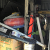 Air compressor, dolly, rolling tool, case, screen, doors, metal racks, drum set, electric lift, computer, parts, TV, TV, monitor clothing