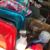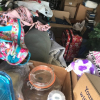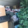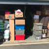 Christmas tree, adult diapers, camping equipment, fishing poles, suitcase, outdoor umbrellas, misc. totes and boxes,