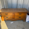 THIS UNIT HAS A BED AND METAL FRAME, HOPE CHEST, DRESSER, AND PLASTIC SHELF