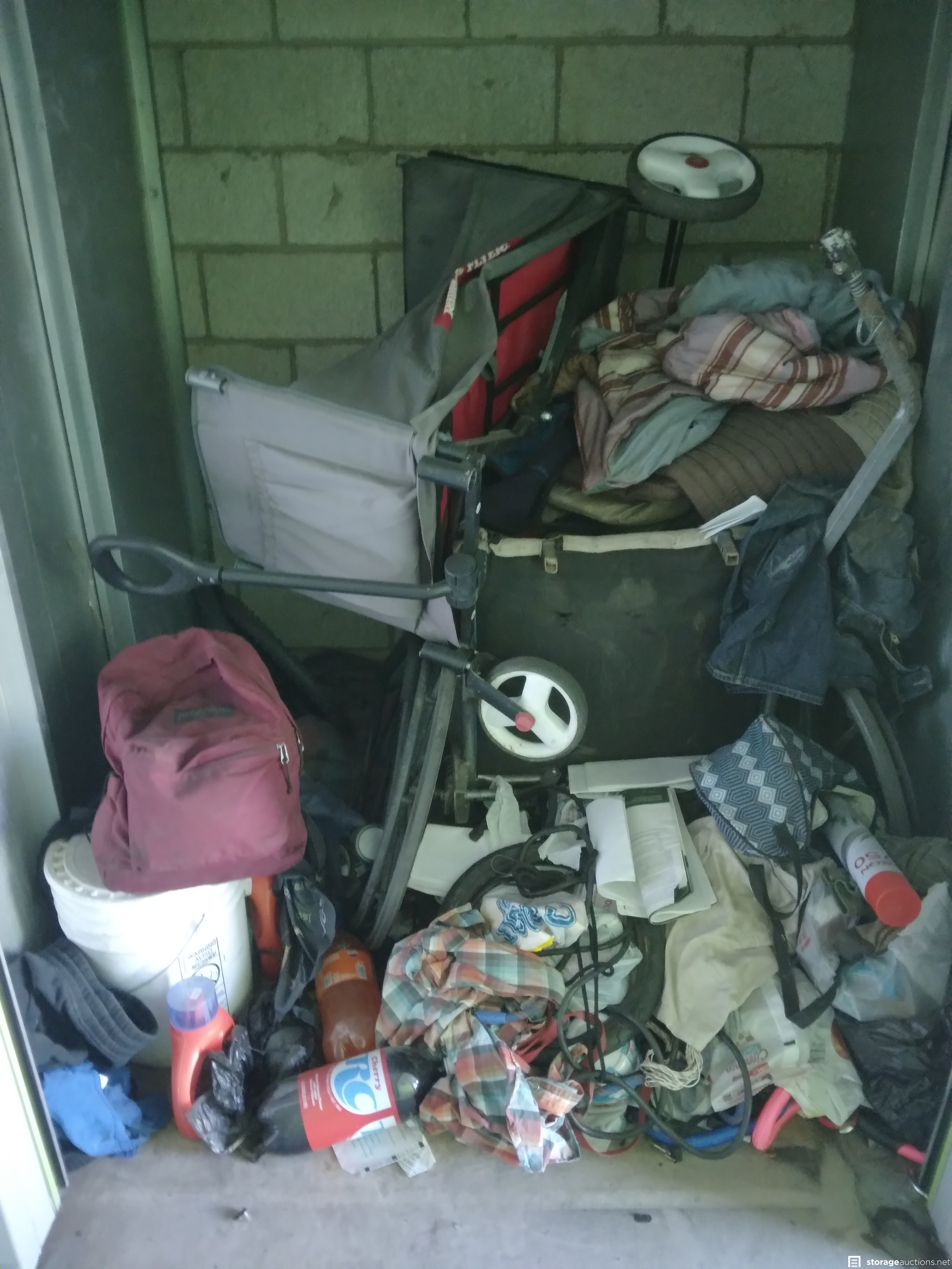 Clothes, wagon, detergent, Back pack and misc.