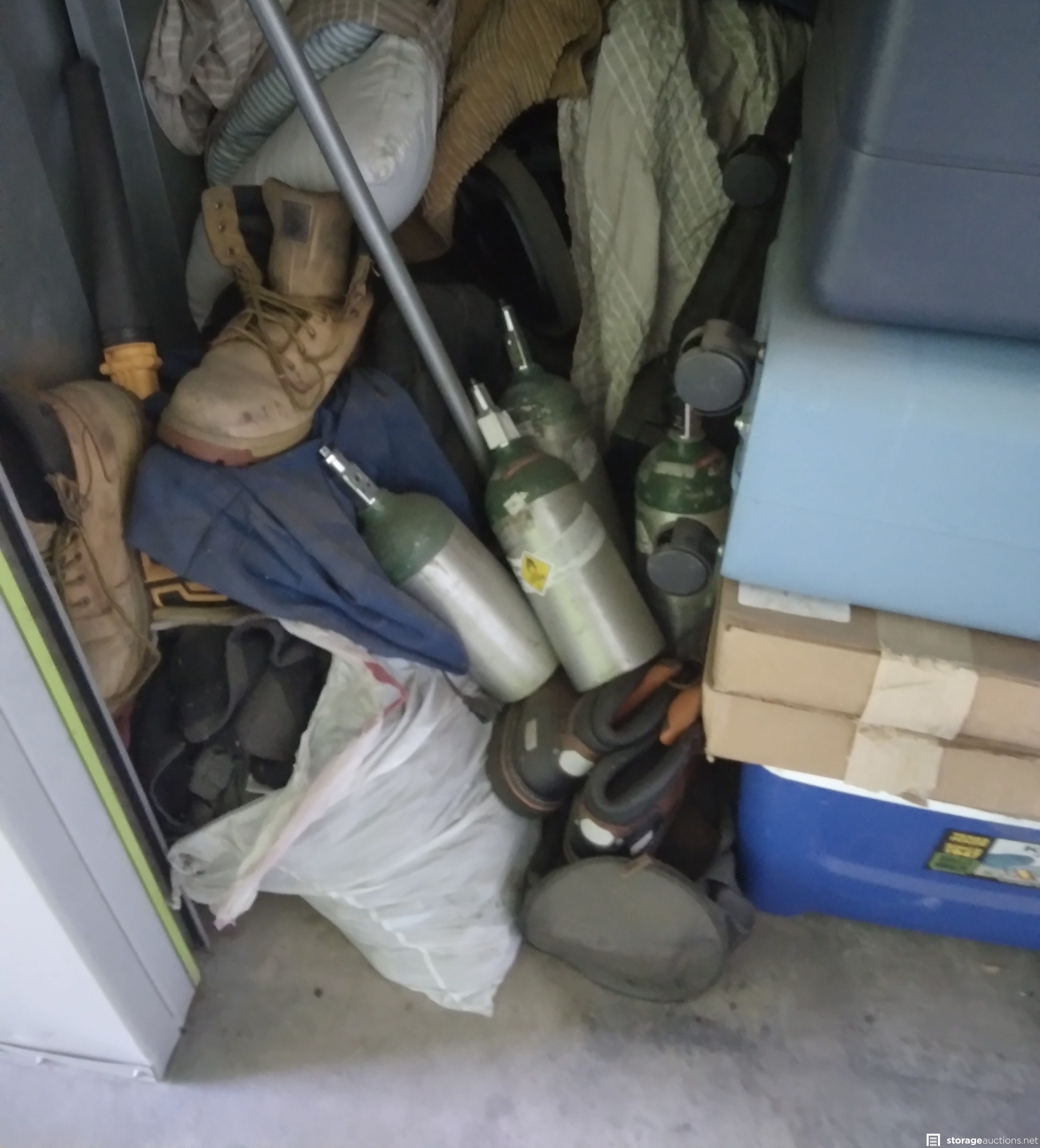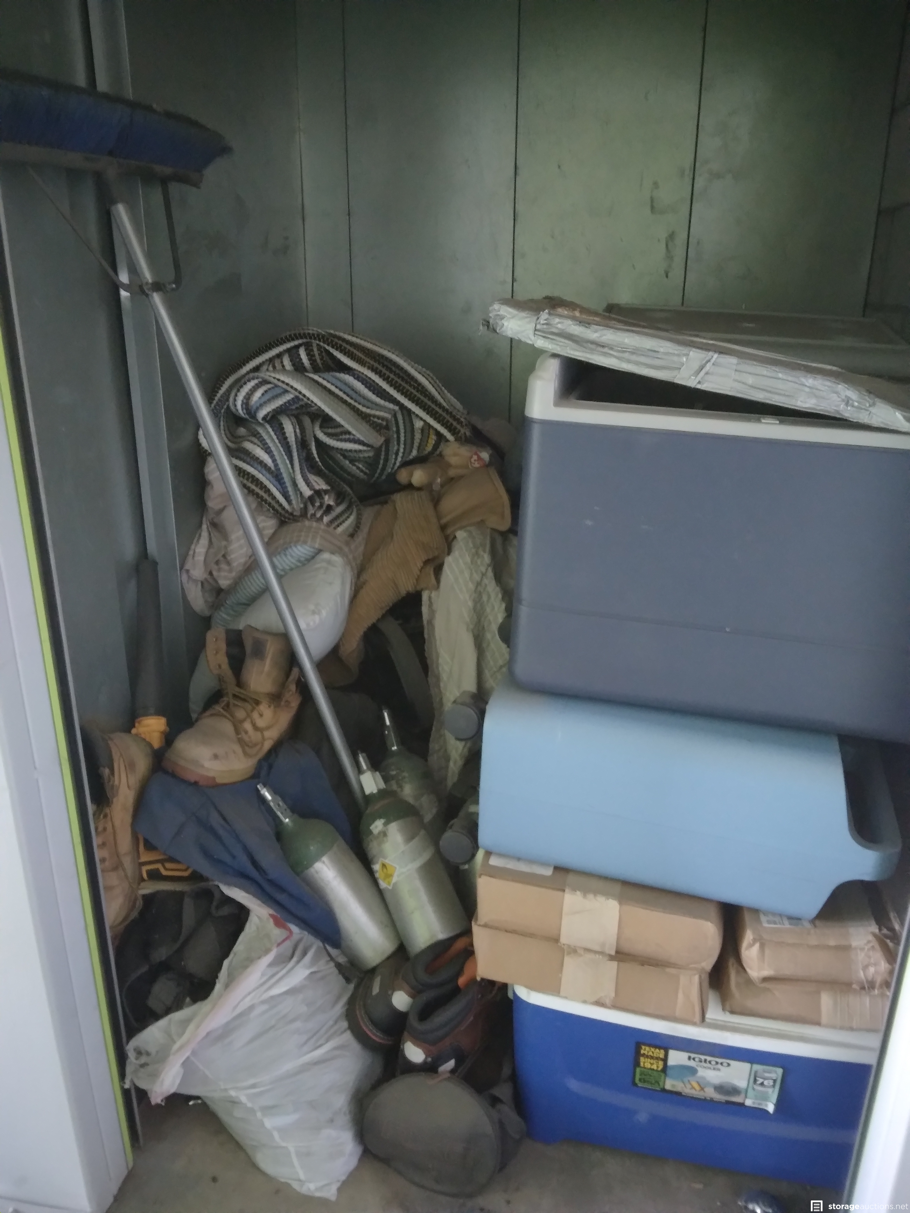 Ice Coolers, Oxygen tanks, Boots, Push broom, Rug, Bedding Items and Misc.