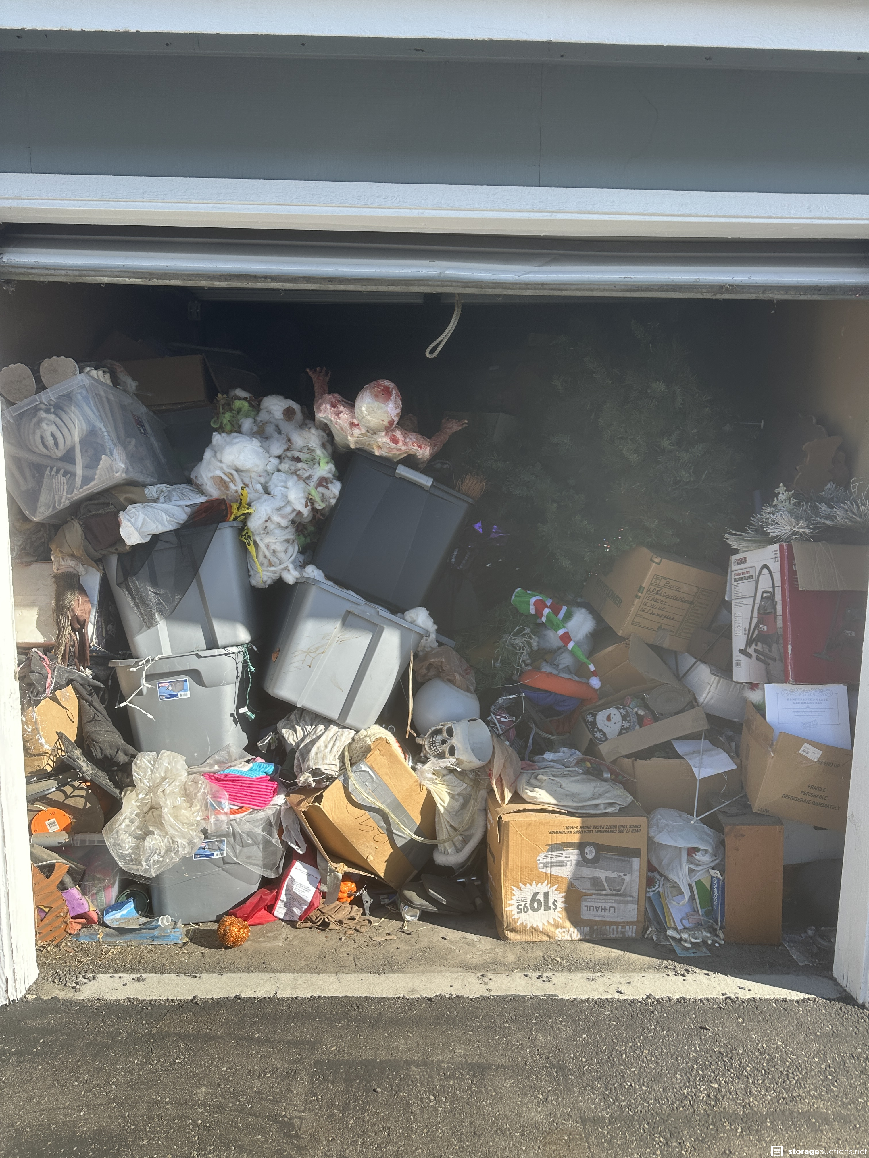 Lots of holiday decorations, misc household items.