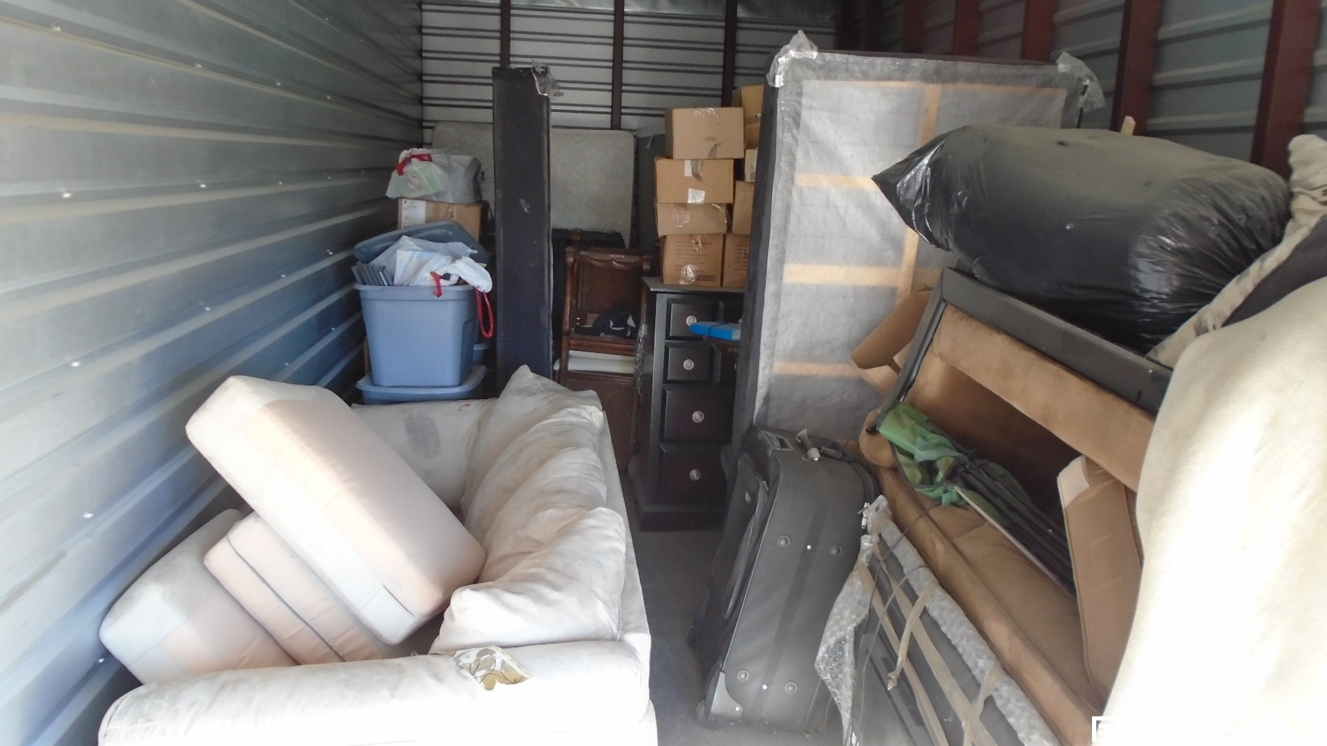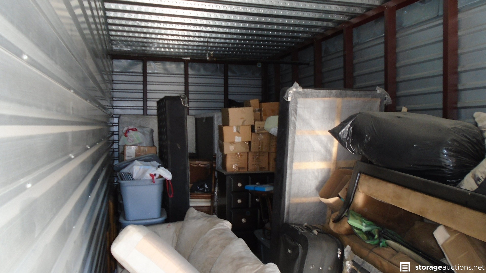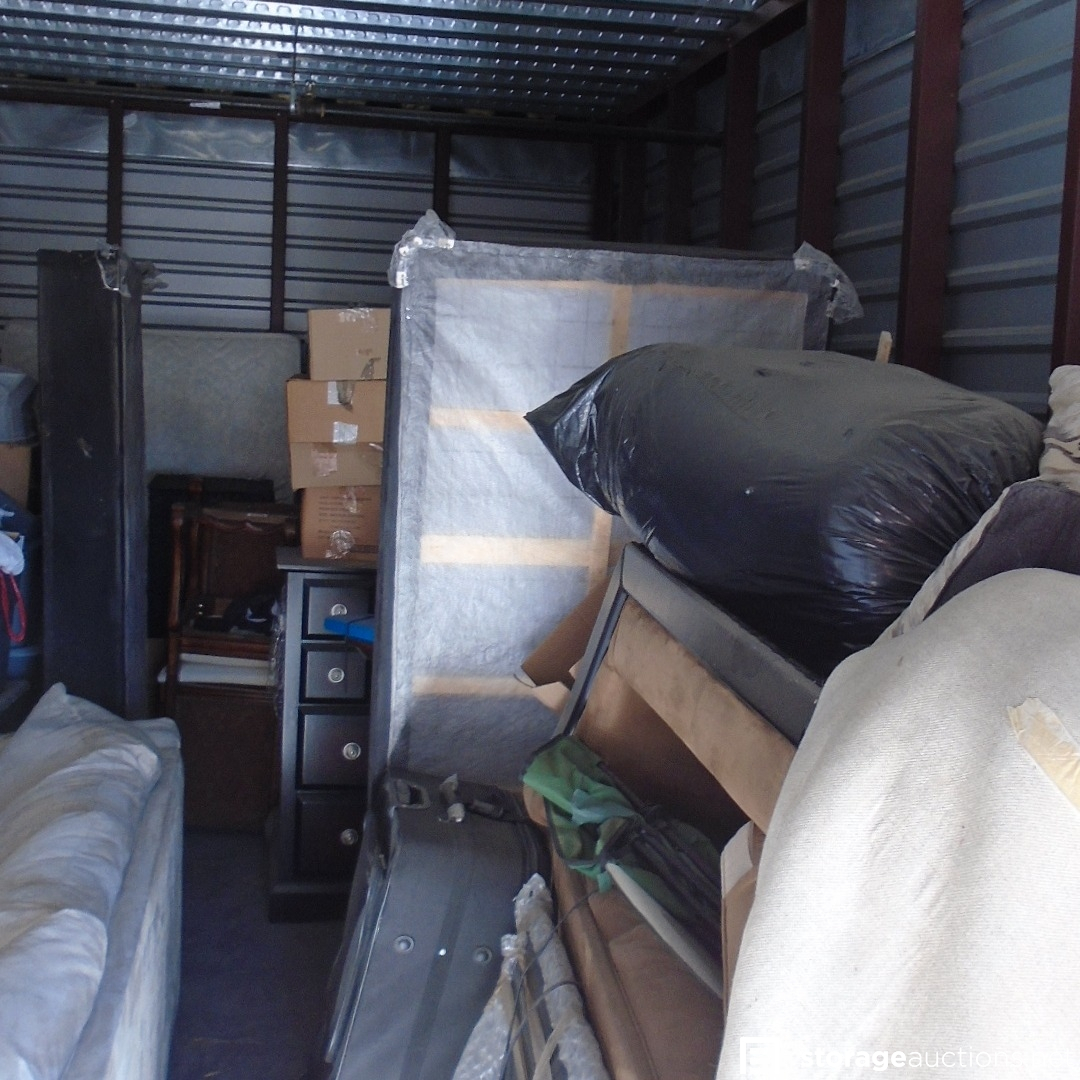 Unit looks to include couches, tv, twin mattresses, dolly, suitcases, dresser, dishes, chairs, rugs, & DVD's