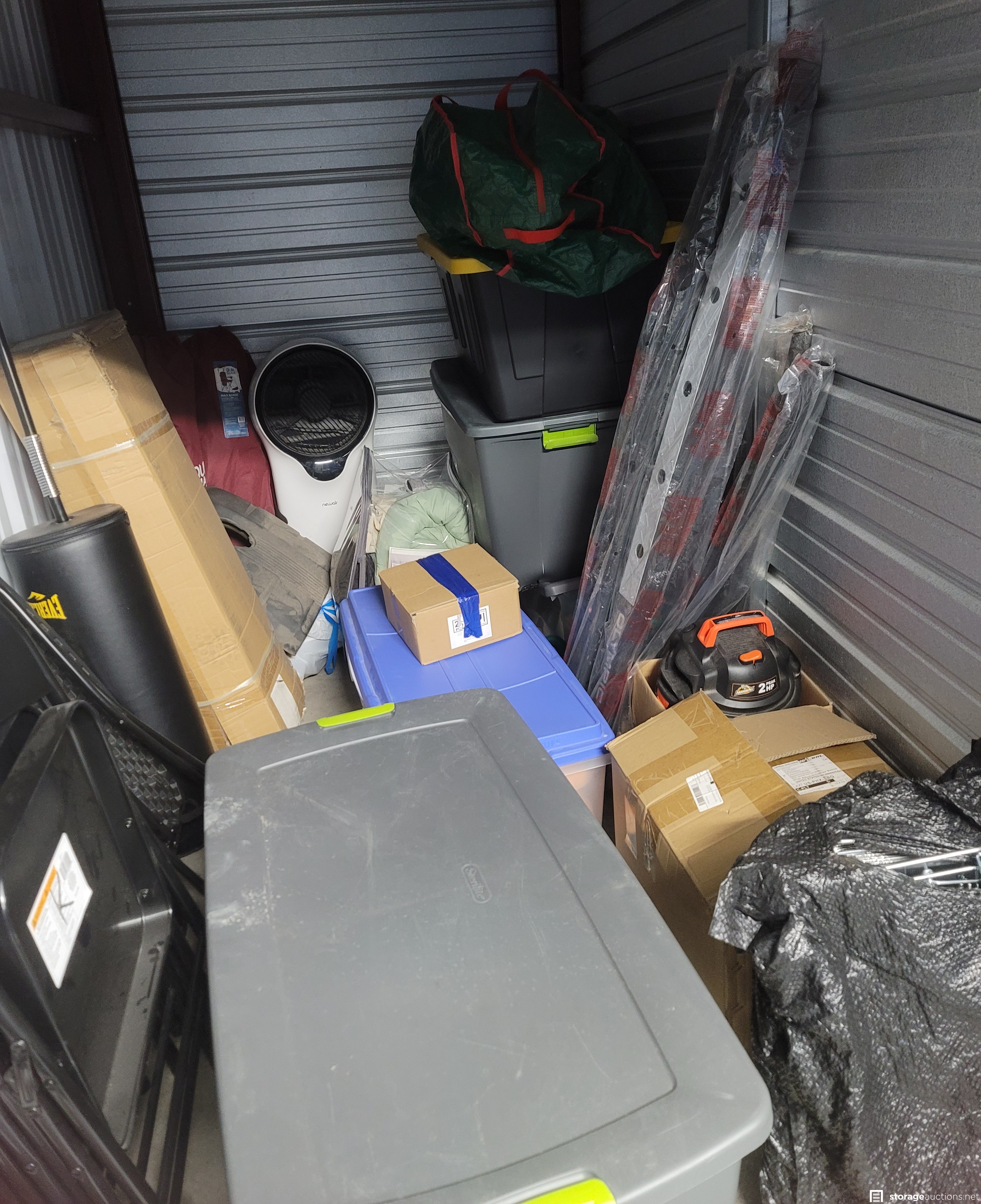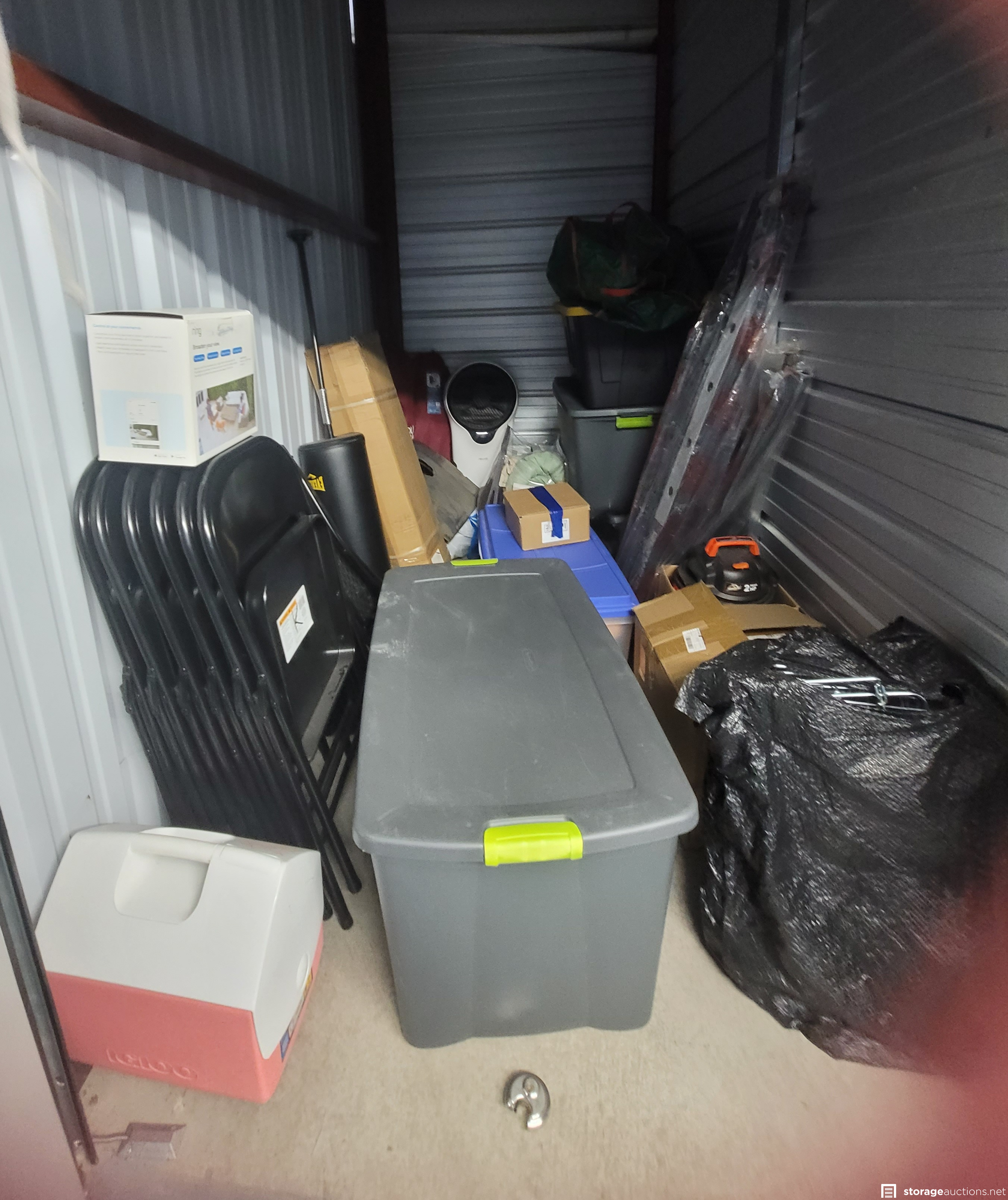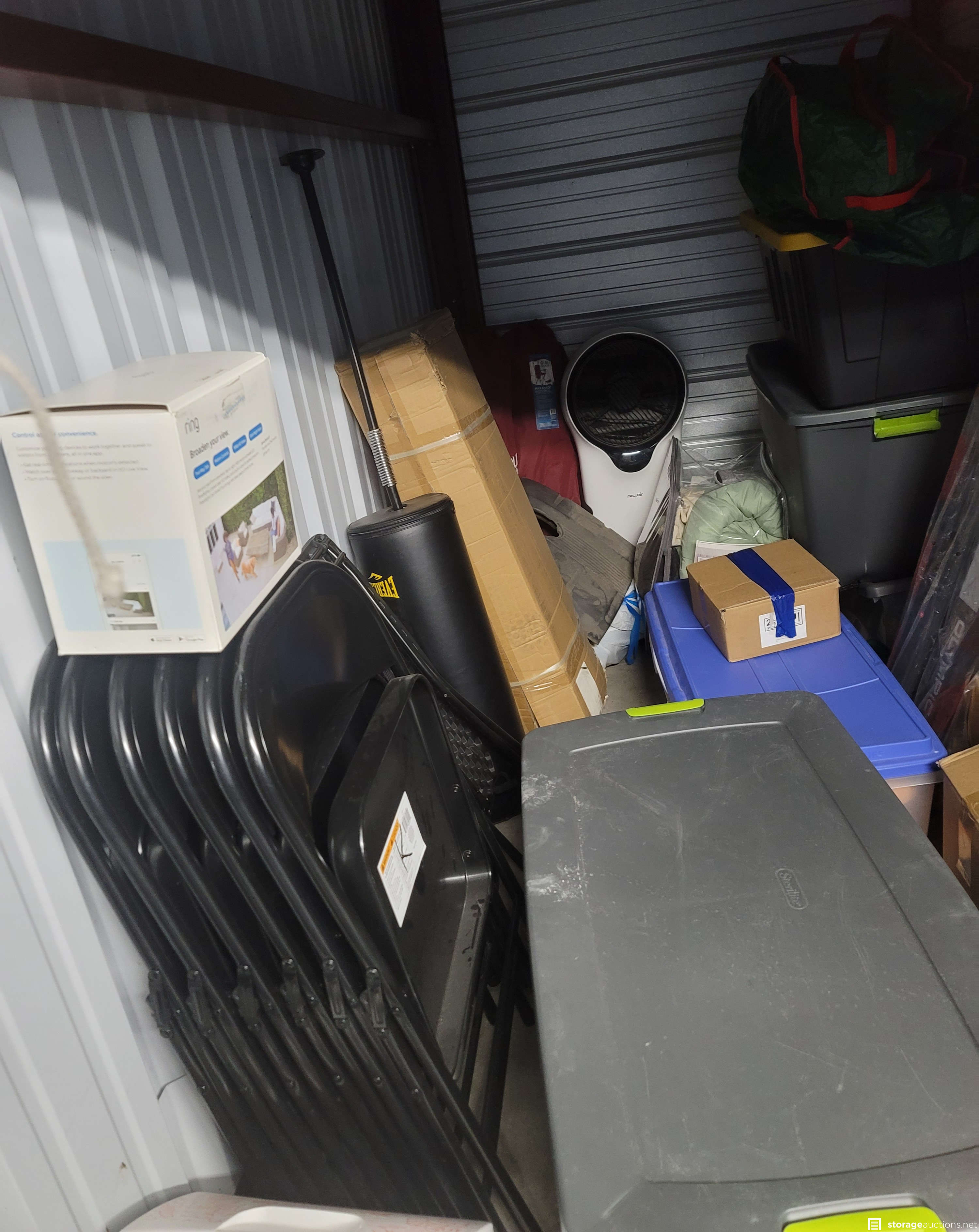 This Unit Contains: Ice Chest, Punching Bag, Fan, Folding Chairs, Bed Frame, Bags, and Totes