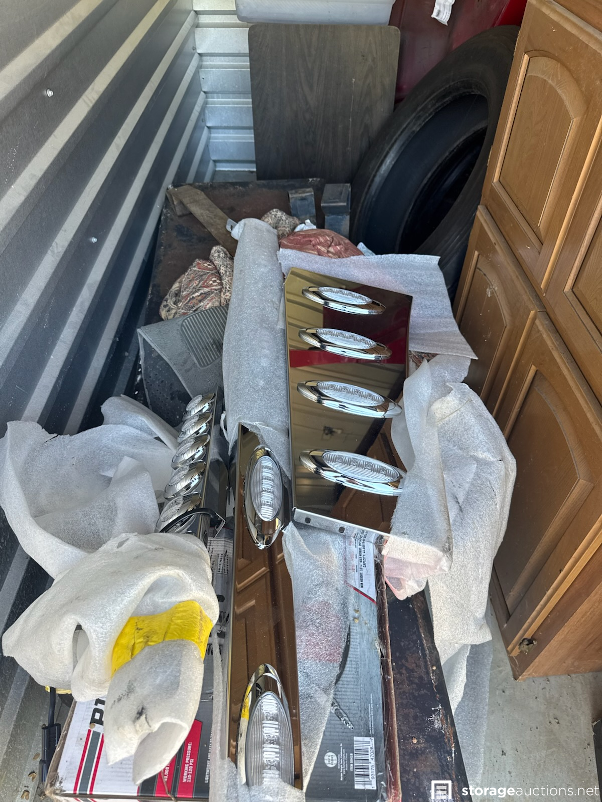 Dresser, toolbox, tire, light bars, furniture, jack, etc.