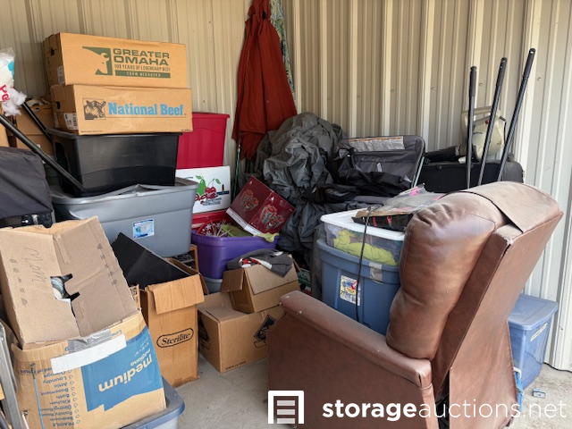 Additional Terms: NOTICE TO BUYERS & BIDDERS: We cannot guarantee the condition of the items in the storage unit. All photos are taken from the outside of the unit and no items are inspected inside the unit. Upon winning a storage space, you must contact the office immediately at 402-464-7100 to pay the winning bid amount. The sale is not final until the bid has been paid and the property has been removed from the storage space. You need to arrange payment via cash or credit card. You will receive a gate code to access the property to remove the contents of the space. Access hours are 6 am-10 pm and you will have until Sunday at 10 pm to clean out the space. Contact and payment must be made by the end of the auction day. The buyer must remove all property from the storage space. If all items are not removed and the space is not swept cleaned by 10 pm on Sunday, the buyer forfeits the $100 cleaning deposit. Big Red Self Storage also reserves the right to charge any cleaning and disposal fees above the $100 deposit. Any remaining property left in the storage space after the above date will become the property of Big Red Self Storage. It is the Buyer's responsibility to immediately return any personal and military items they find in the storage space. Items include family photos, financial records, legal documents, etc. Any military items must be returned to the office to be picked up by the local National Guard. Big Red Self Storage reserves the right to cancel any auction if the bids are deemed unreasonable. Bidders must be at least 18 years old. Landlords, officers, members, partners, and employees shall not be liable whatsoever to any extent to Buyer or Buyer's invitees, family or others for any personal injury or death arising from Buyer's use of the storage space or premises from any cause whatsoever including, but not limited to, the active or passive acts or omissions or negligence of Landlord, or respective agents, officers, or employees. If you are the winning bidder and a current tenant at Big Red Self Storage, and your account has a past due balance, your $100 cleaning deposit may be applied to your past due balance.