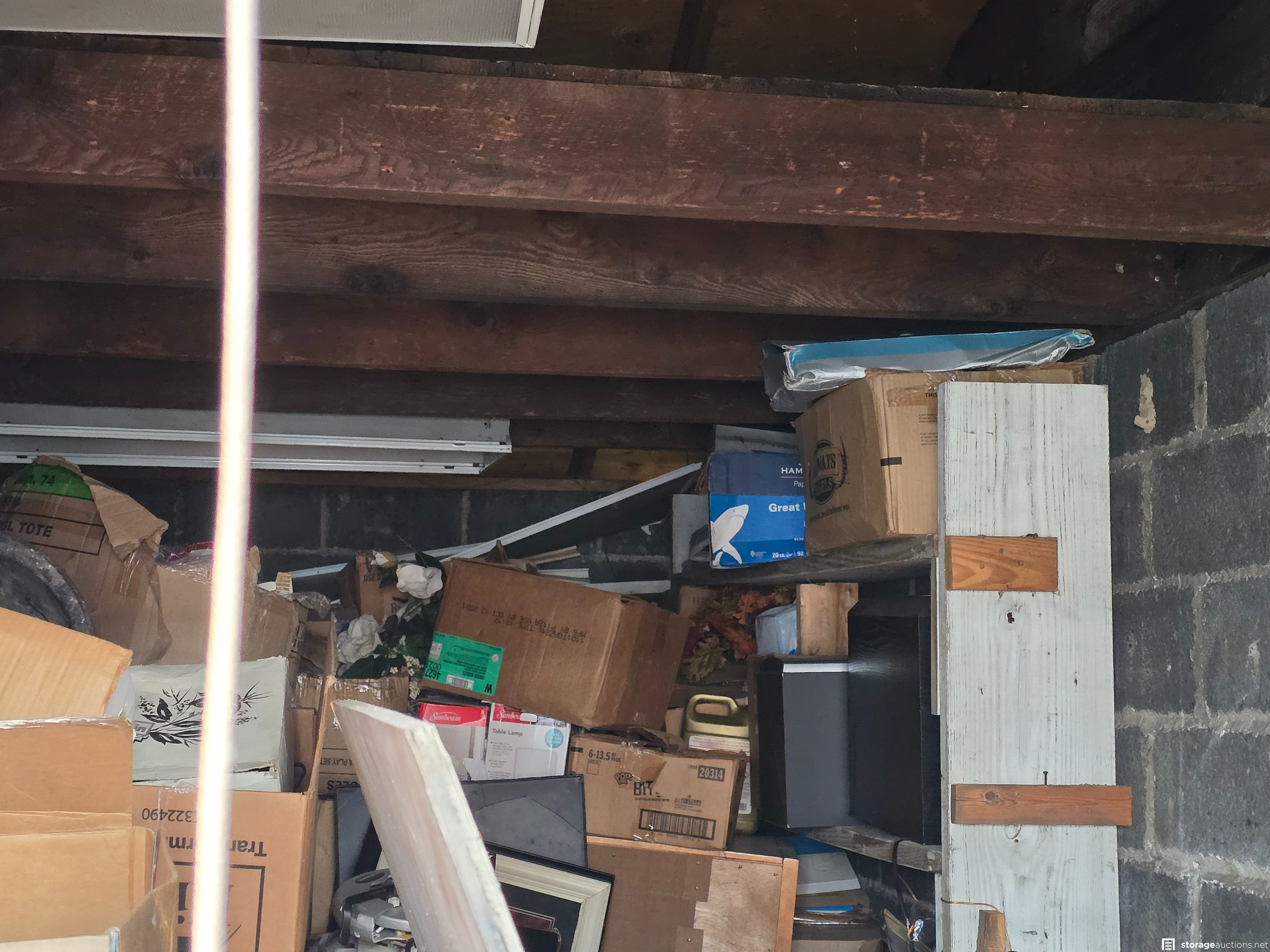 Large 200 sq. ft. storage unit containing a variety of items. This unit appears to be densely packed and contains household goods, electronics, power tools, and many other things.