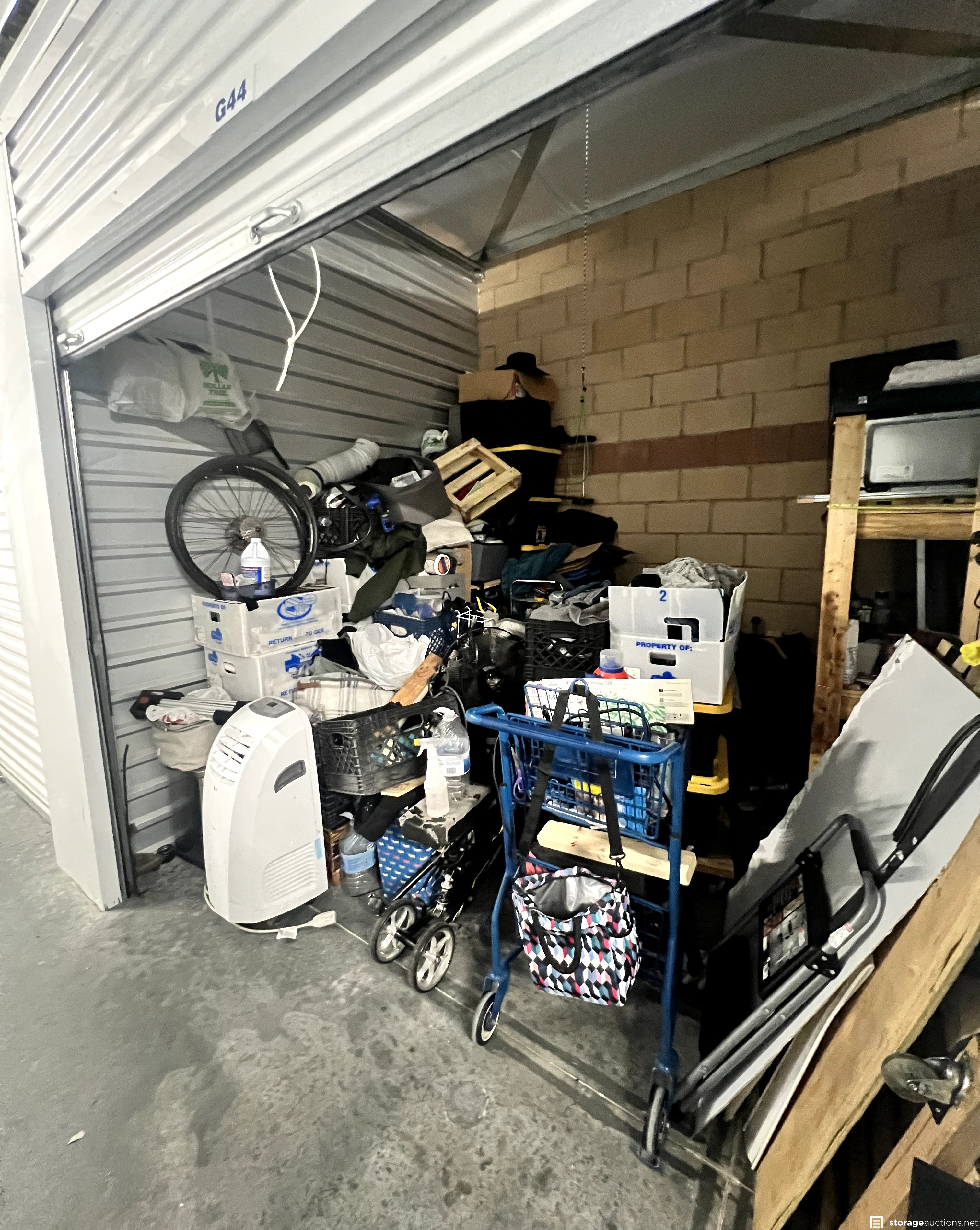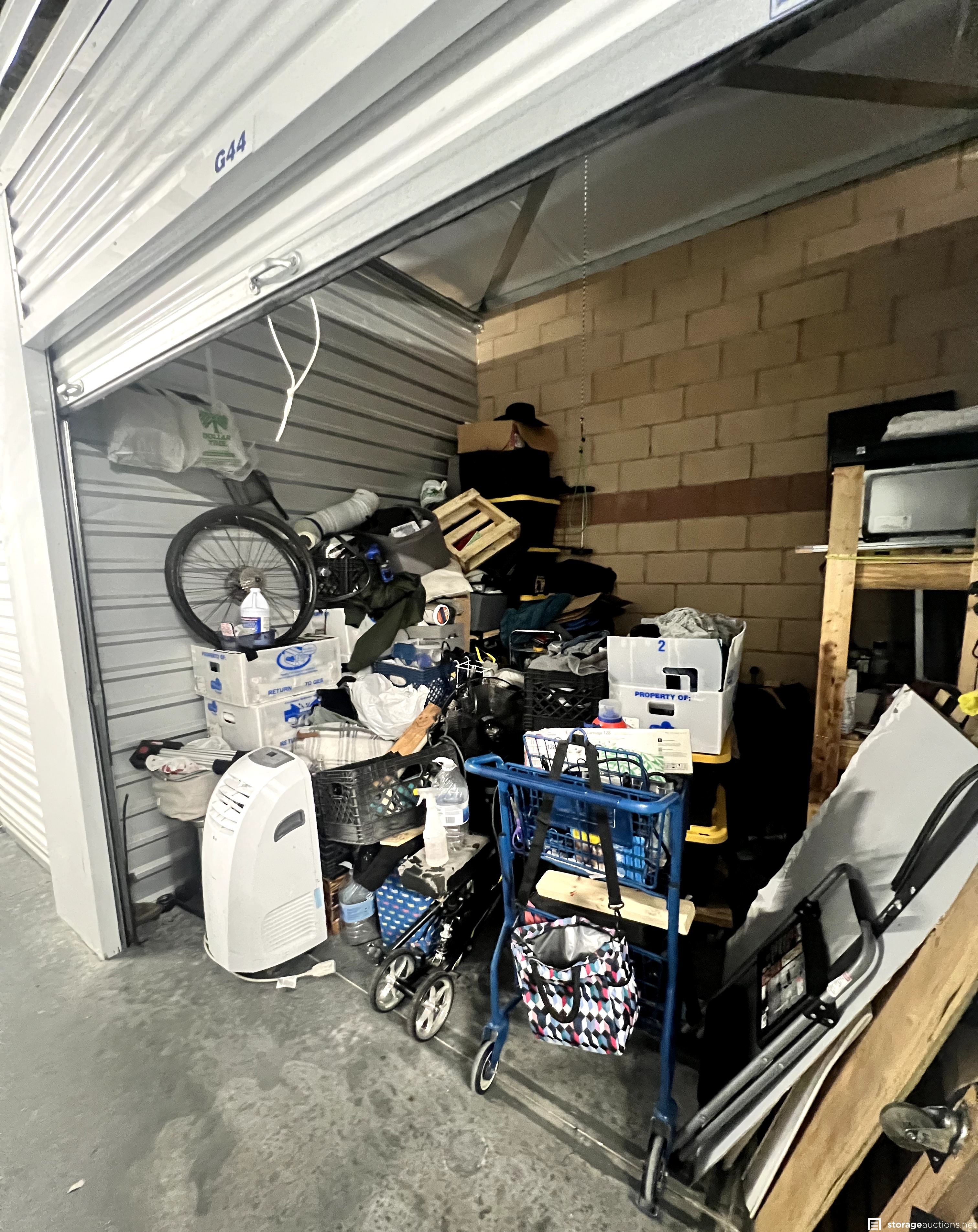 Additional Terms: **NOTICE - Defaulted tenant has legal right to cure account, thus cancelling the auction, up until cash payment is received from the winning bidder.** Buyers must be 18 years old to bid and pay winning bid. Winning bidder must pay within 48 hours in person. Cash or money order only. $200 deposit. If paying with money order, deposit must be on a separate money order. Unit must be cleaned out within 72 hours after payment. Deposit will be returned after unit is cleaned out. If unit is not cleaned out after 72 hours, unit will be considered abandoned and deposit will be kept by the storage facility. Must have a paid confirmation and valid photo ID to pick up contents of unit. All sales are final, all sales are AS IS for the entire content of unit, unless otherwise specified. Items containing personal information found with in unit must be returned to the office upon clean-out of the unit. No dumping, No pets allowed. All auction unit(s) are subject to cancellation by the storage facility.