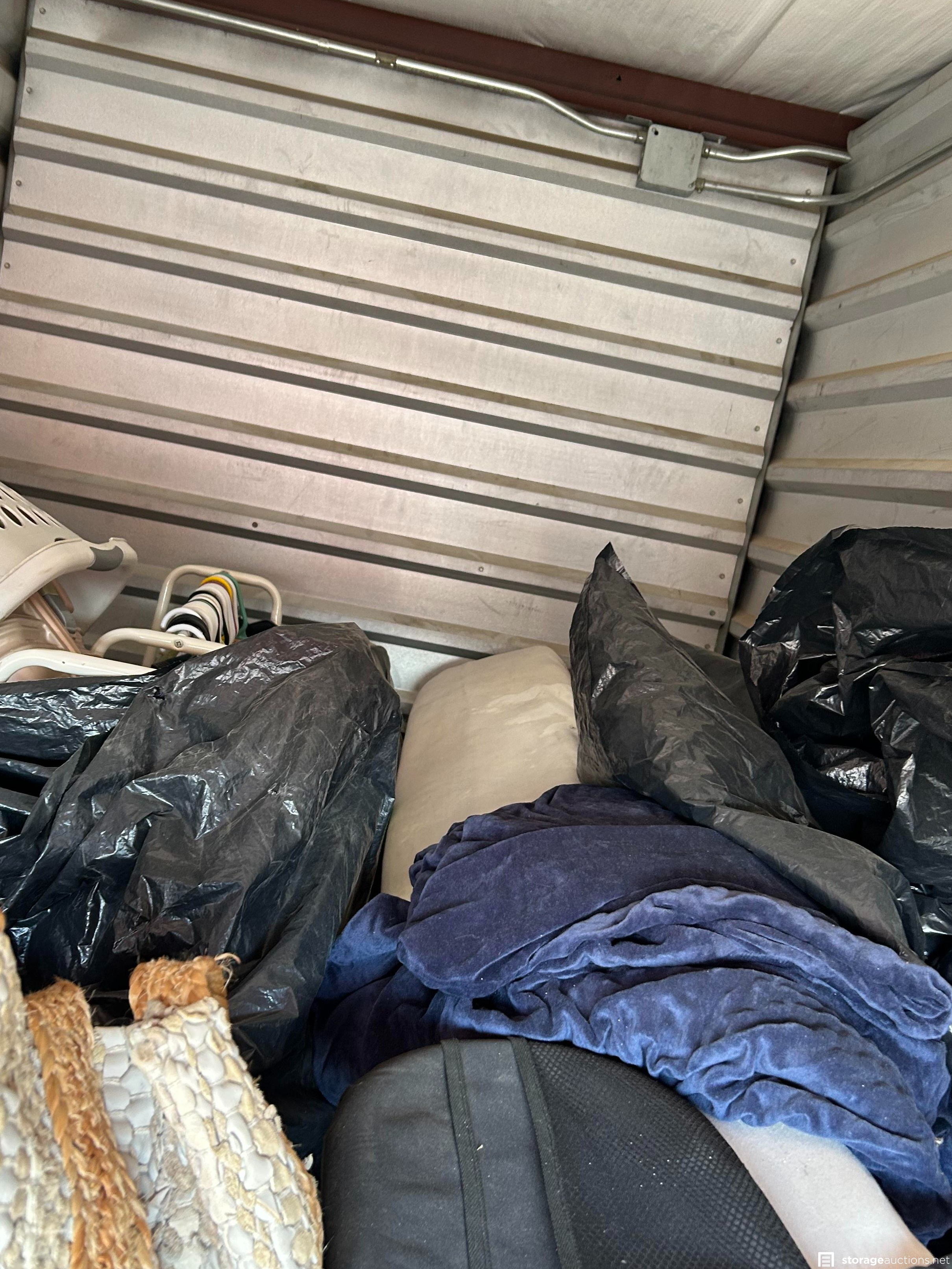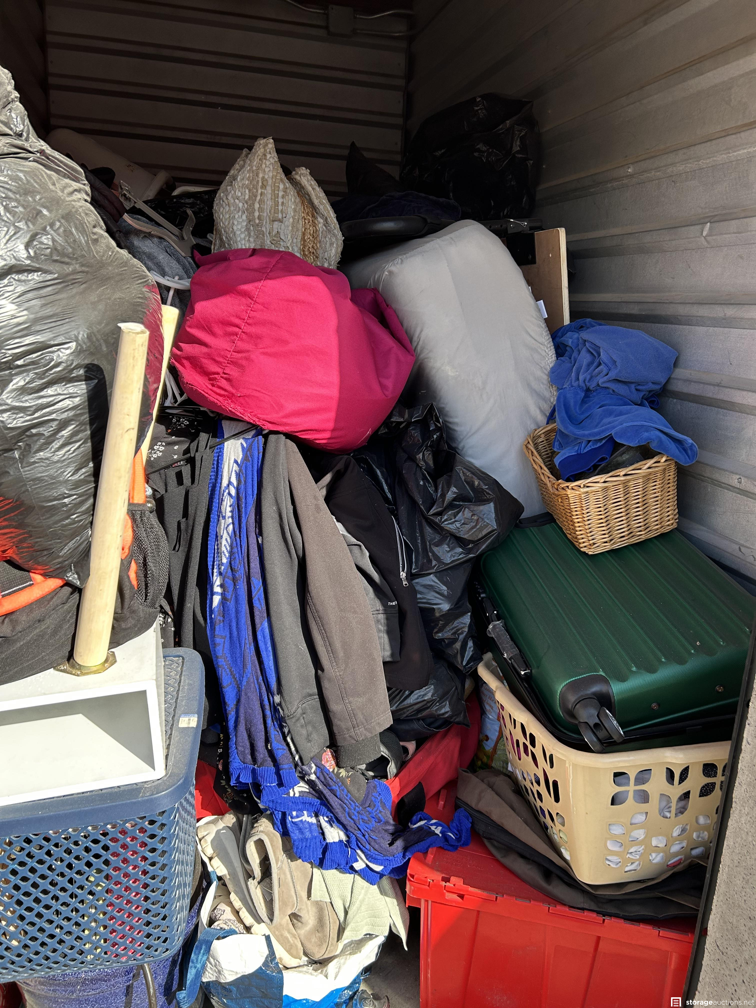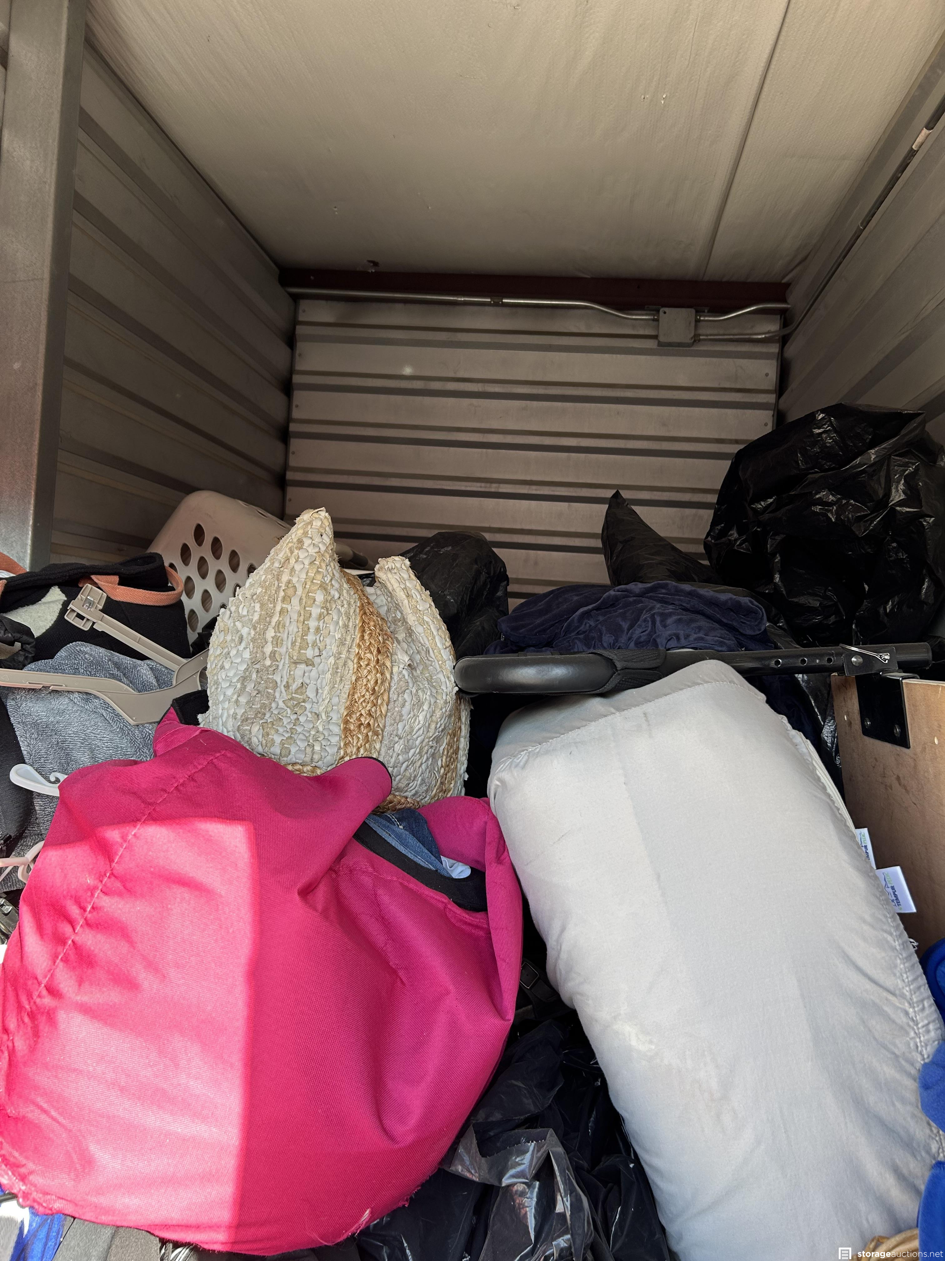 This unit has a mattress, bags, totes, suitcase