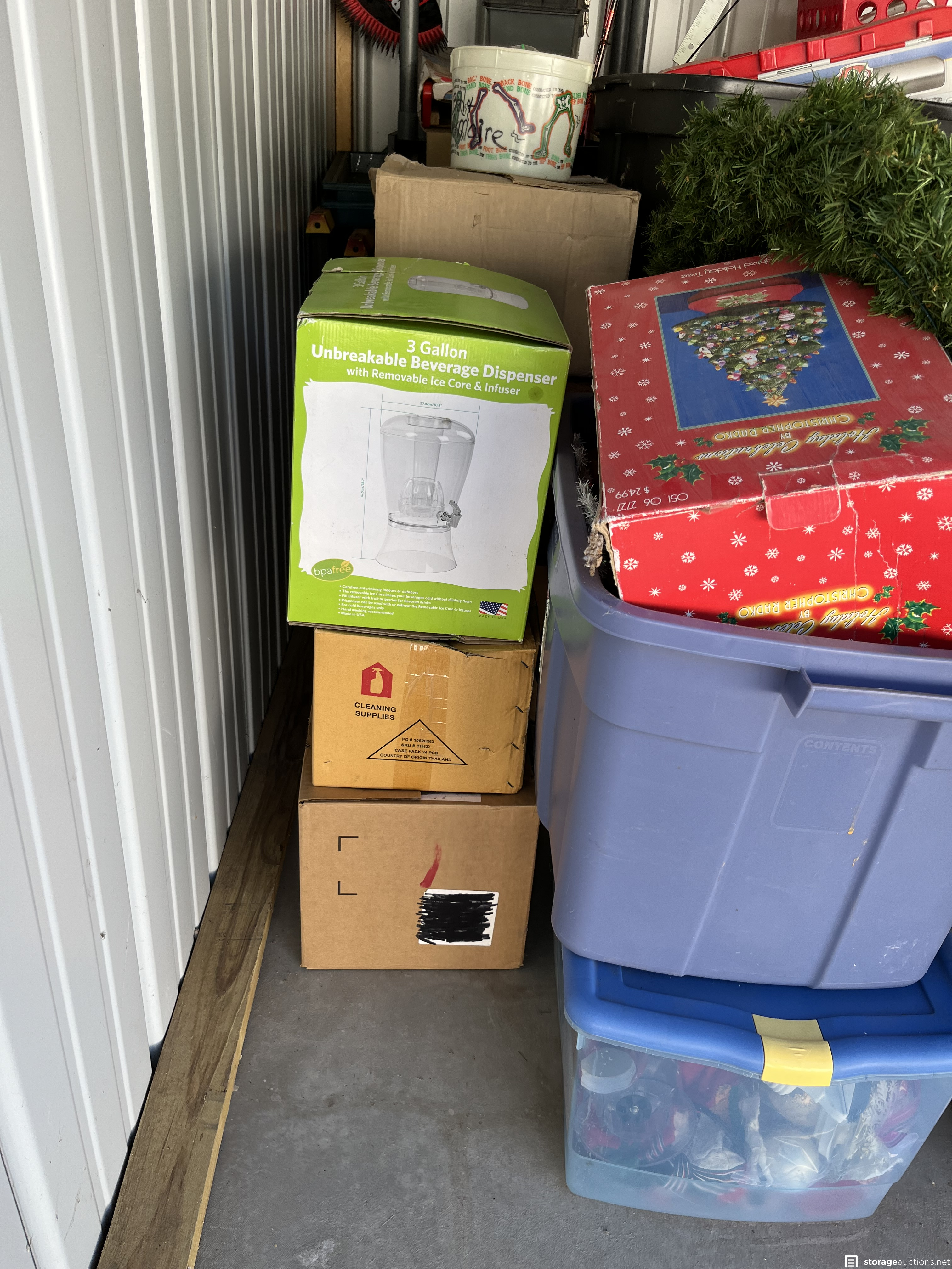 Additional Terms: Please call when auction closes to make payment. $100 deposit will be returned when unit is clean and empty. Complete Clean out within 48 hours of auction. Pallets belong to the facility and can be left inside the unit.