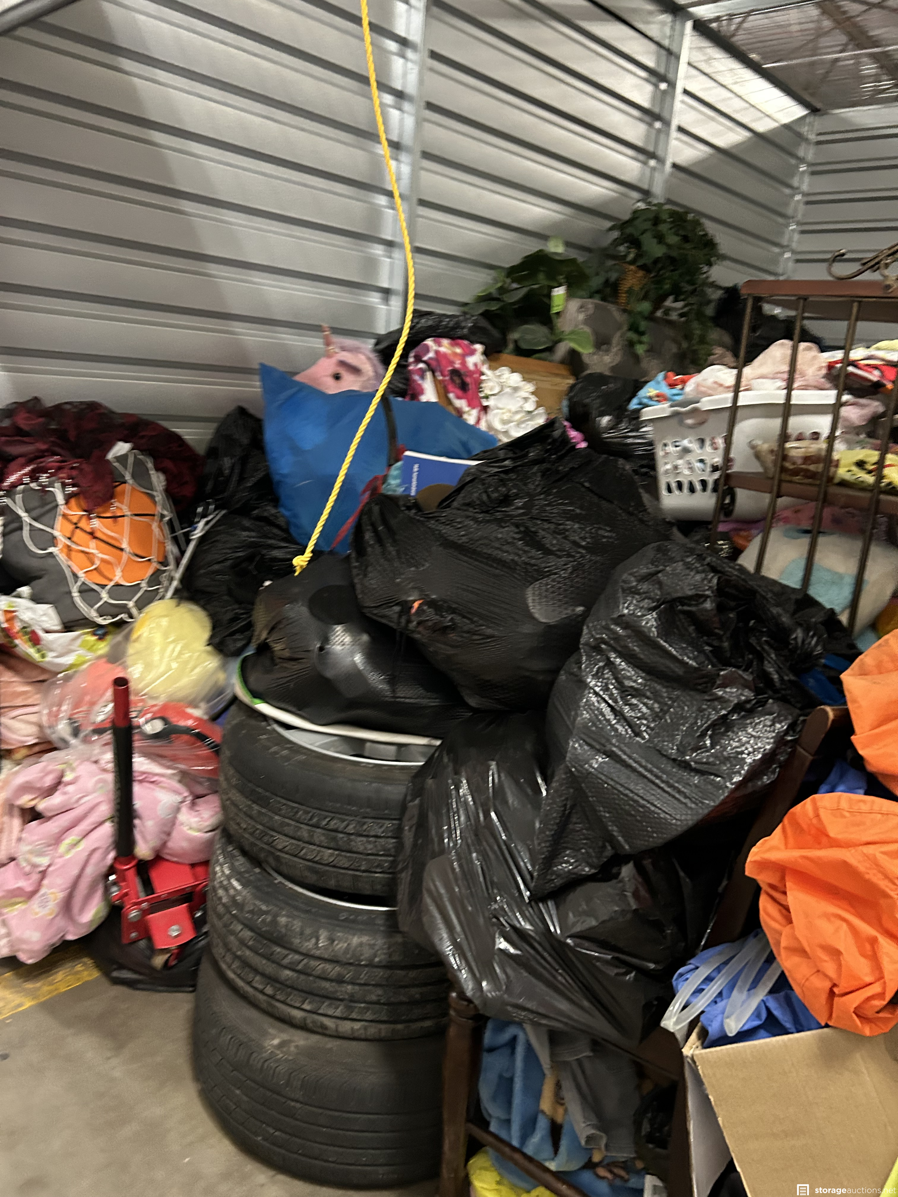 Tires , Floor Jack , Table, Bags, Bike