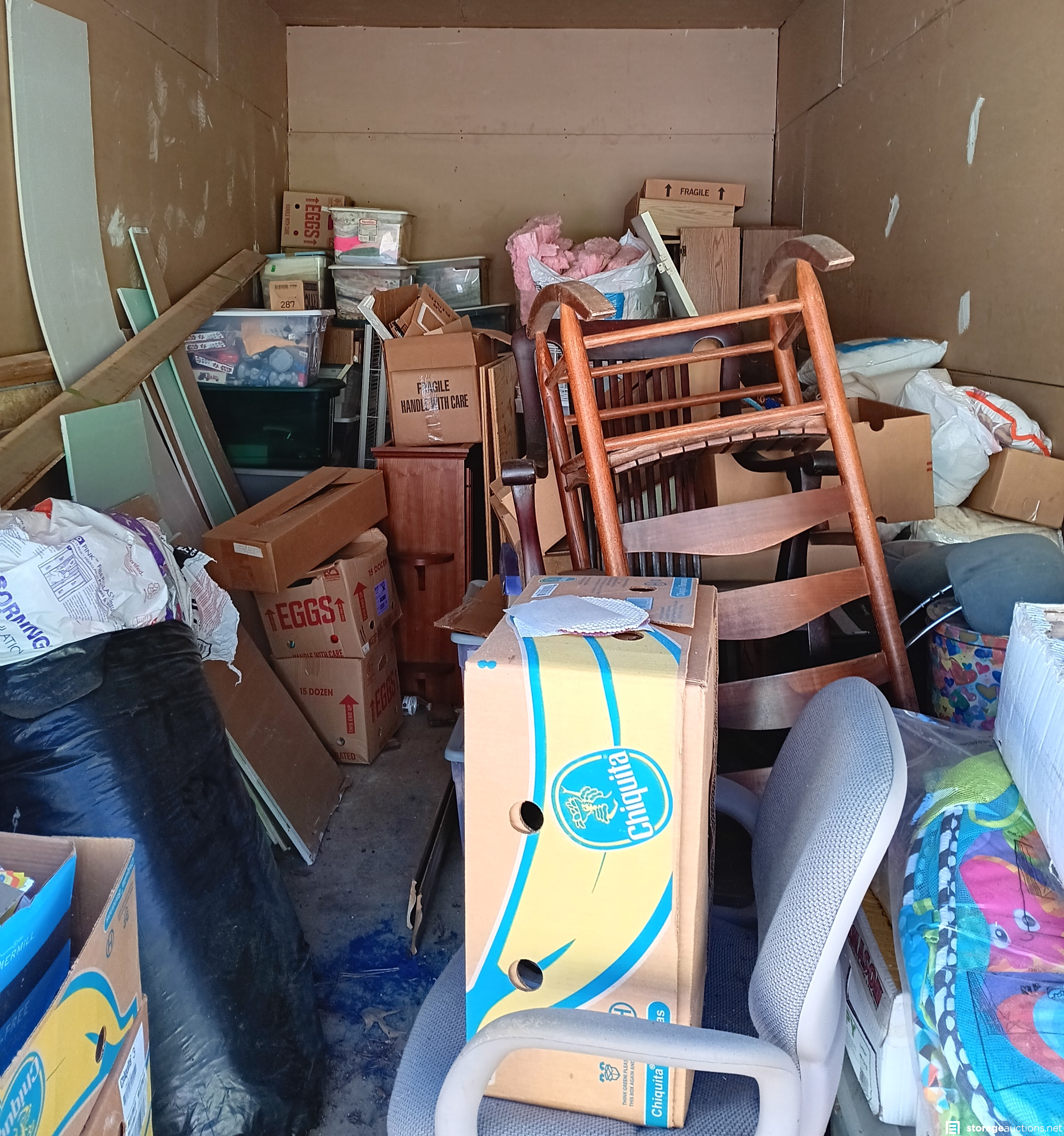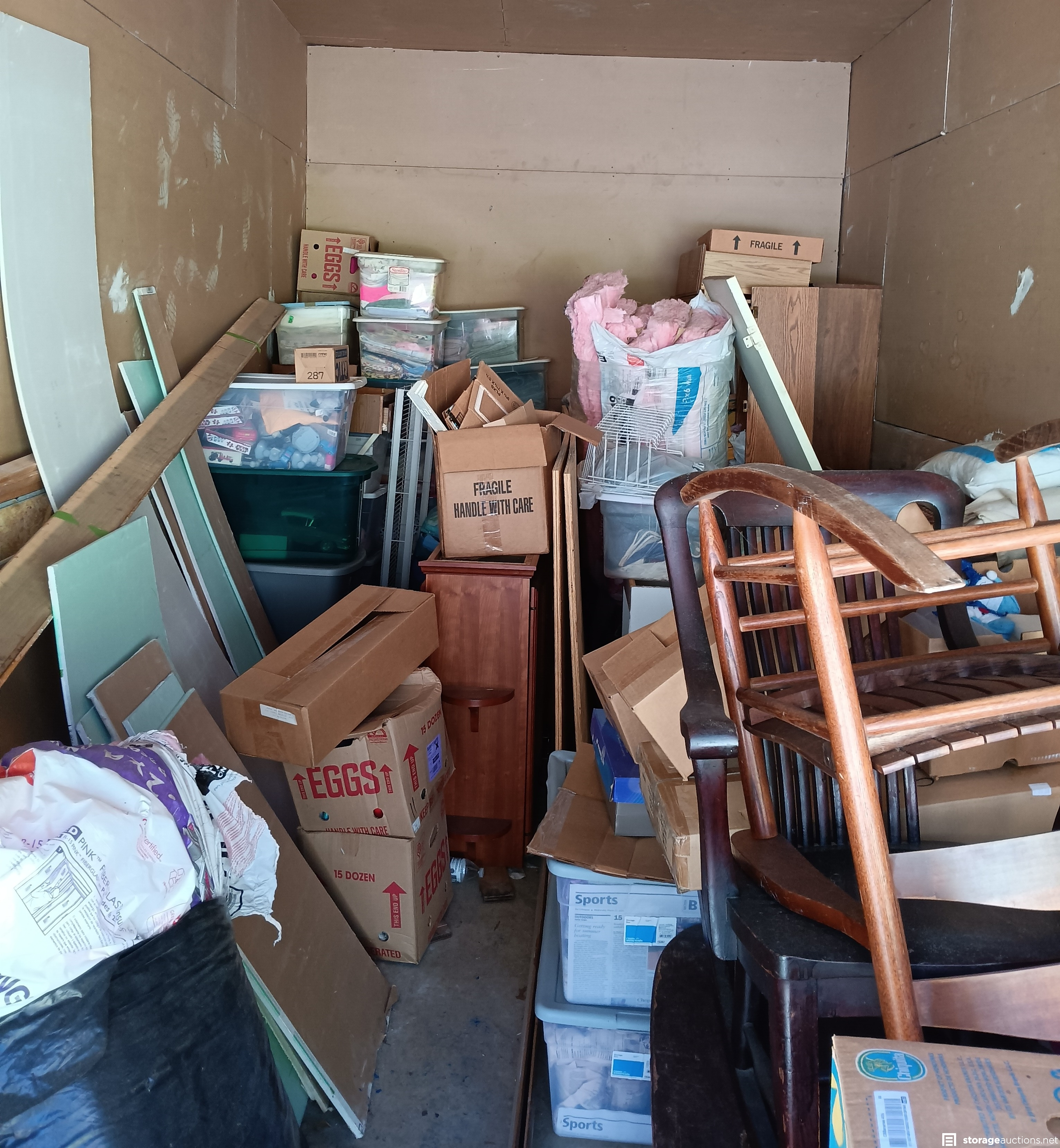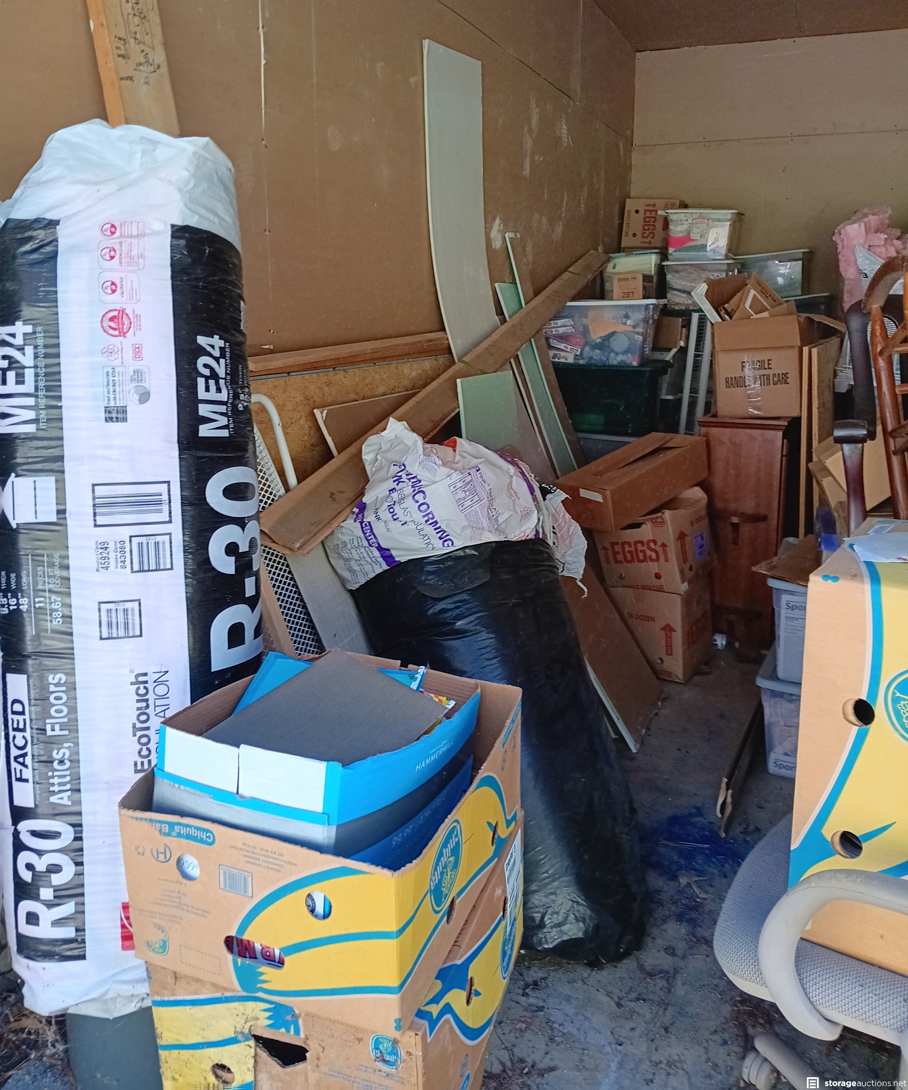 Furniture, Boxes, Totes, Drywall, Insulation, Bedding, other miscellaneous items.