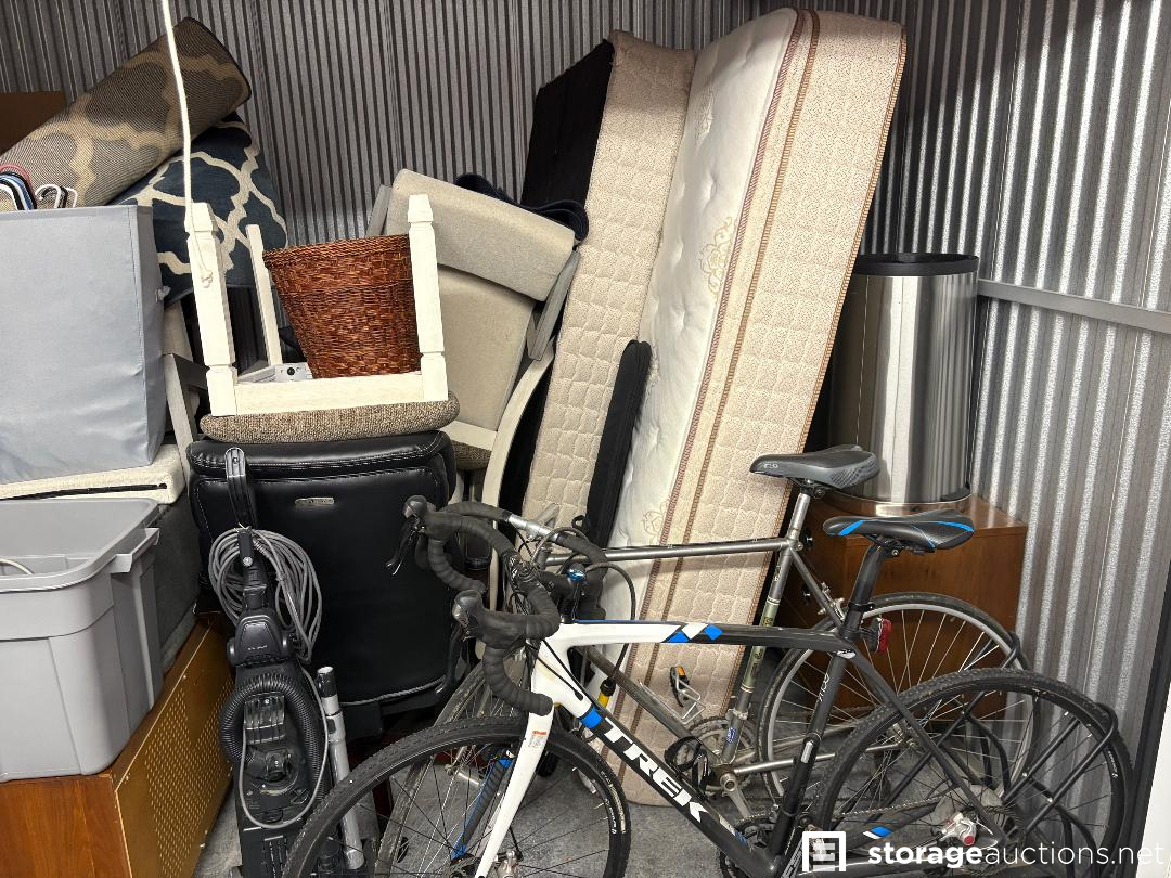 TREK BIKE, SHELVES, TOTES, MATTRESS, BOXES, OFFICE FURNITURE, RECORDS, MISC ITEMS