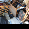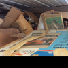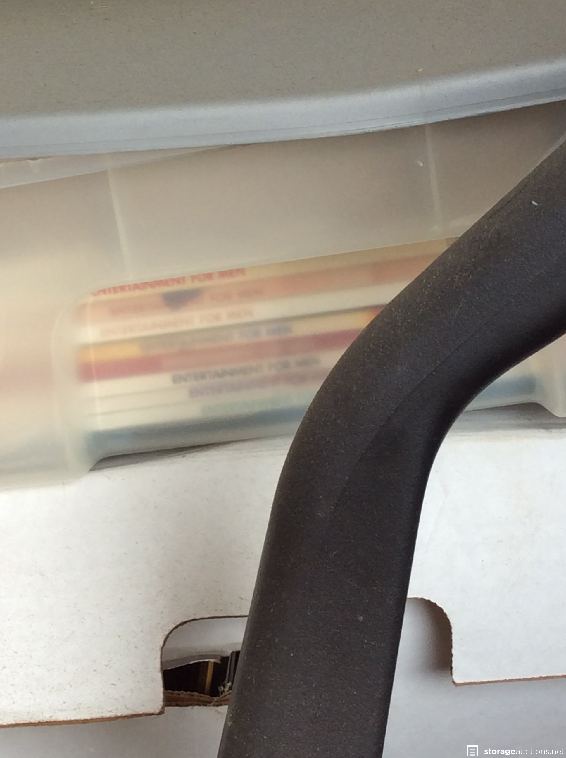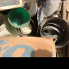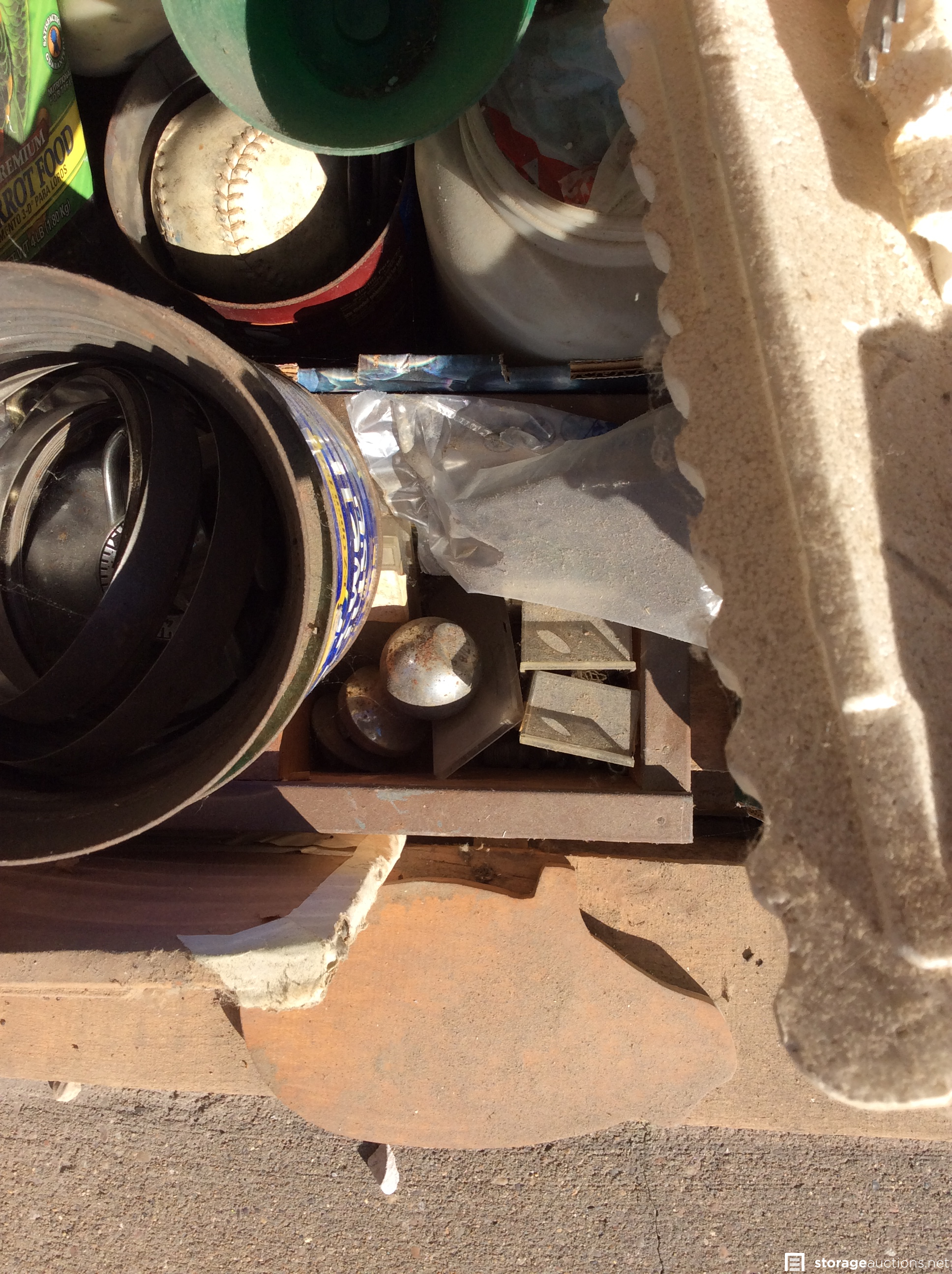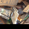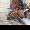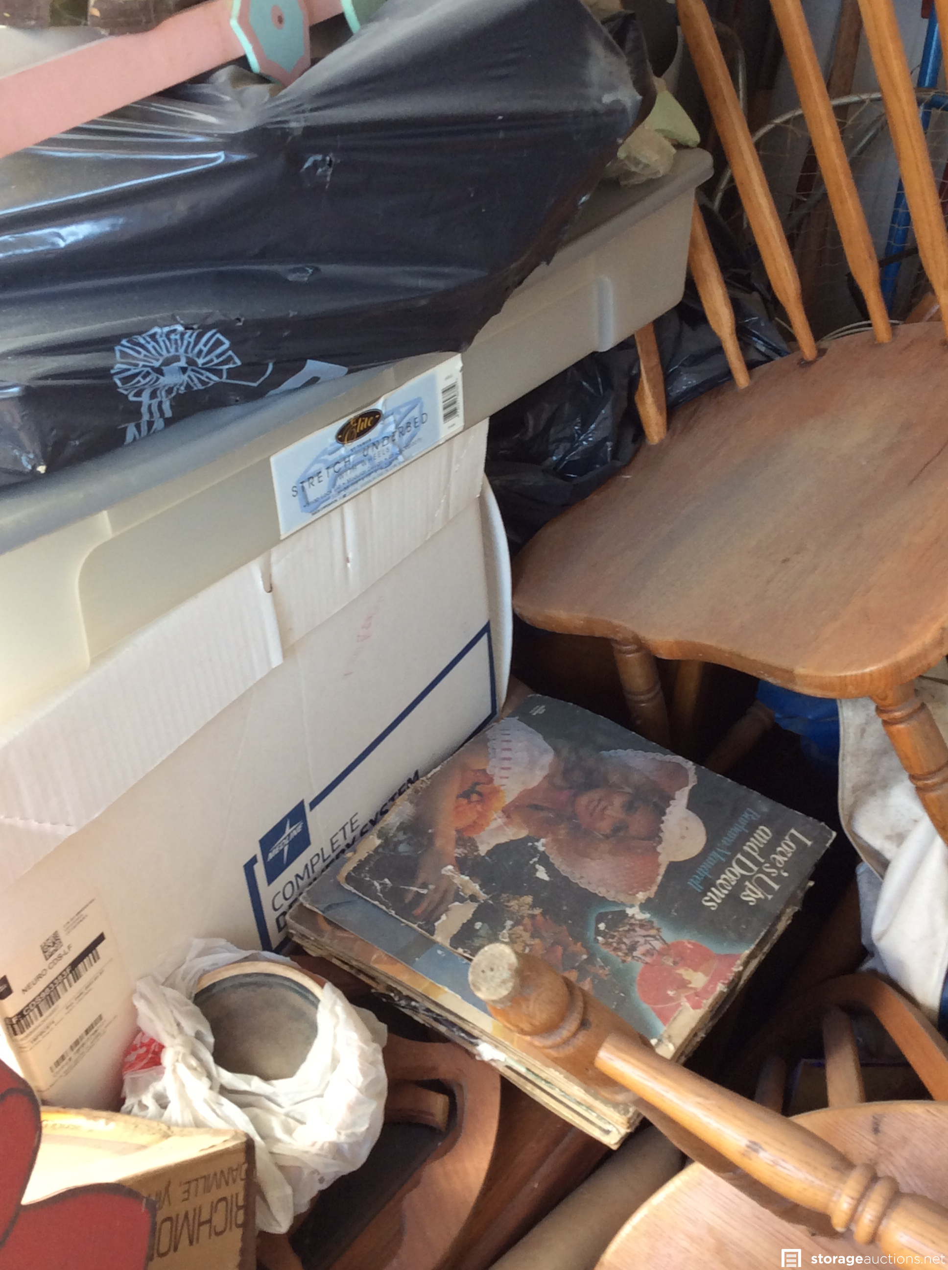 Wooden chairs, albums, totes, lawn tools, holiday decor, tote with magazines, wooden crate w/asst hardware, glass bottles