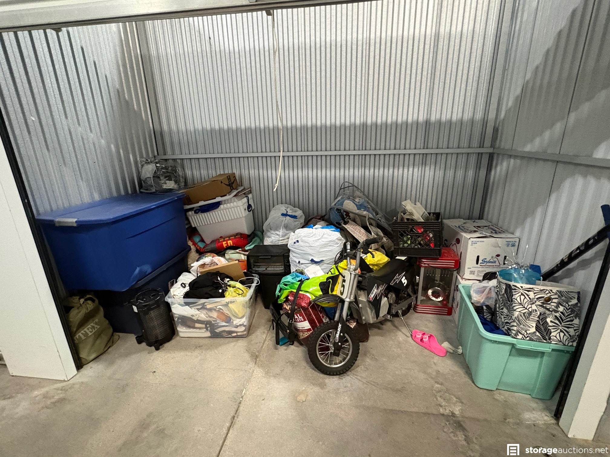 Additional Terms: NOTICE TO BUYERS & BIDDERS: We cannot guarantee the condition of the items in the storage unit. All photos are taken from the outside of the unit and no items are inspected inside the unit. Upon winning a storage space, you must contact the office immediately at 402-325-6800 to pay the winning bid amount. The sale is not final until the bid has been paid and the property has been removed from the storage space. You need to arrange payment via cash or credit card. You will receive a gate code to access the property to remove the contents of the space. Access hours are 6 am-10 pm and you will have until Sunday at 10 pm to clean out the space. Contact and payment must be made by the end of the auction day. The buyer must remove all property from the storage space. If all items are not removed and the space is not swept cleaned by 10 pm on Sunday, the buyer forfeits the $100 cleaning deposit. Big Red Self Storage also reserves the right to charge any cleaning and disposal fees above the $100 deposit. Any remaining property left in the storage space after the above date will become the property of Big Red Self Storage. It is the Buyer's responsibility to immediately return any personal and military items they find in the storage space. Items include family photos, financial records, legal documents, etc. Any military items must be returned to the office to be picked up by the local National Guard. Big Red Self Storage reserves the right to cancel any auction for any reason. Bidders must be at least 18 years old. Landlords, officers, members, partners, and employees shall not be liable whatsoever to any extent to Buyer or Buyer's invitees, family or others for any personal injury or death arising from Buyer's use of the storage space or premises from any cause whatsoever including, but not limited to, the active or passive acts or omissions or negligence of Landlord, or respective agents, officers, or employees. If you are the winning bidder and a current tenant at Big Red Self Storage, and your account has a past due balance, your $100 cleaning deposit may be applied to your past due balance.