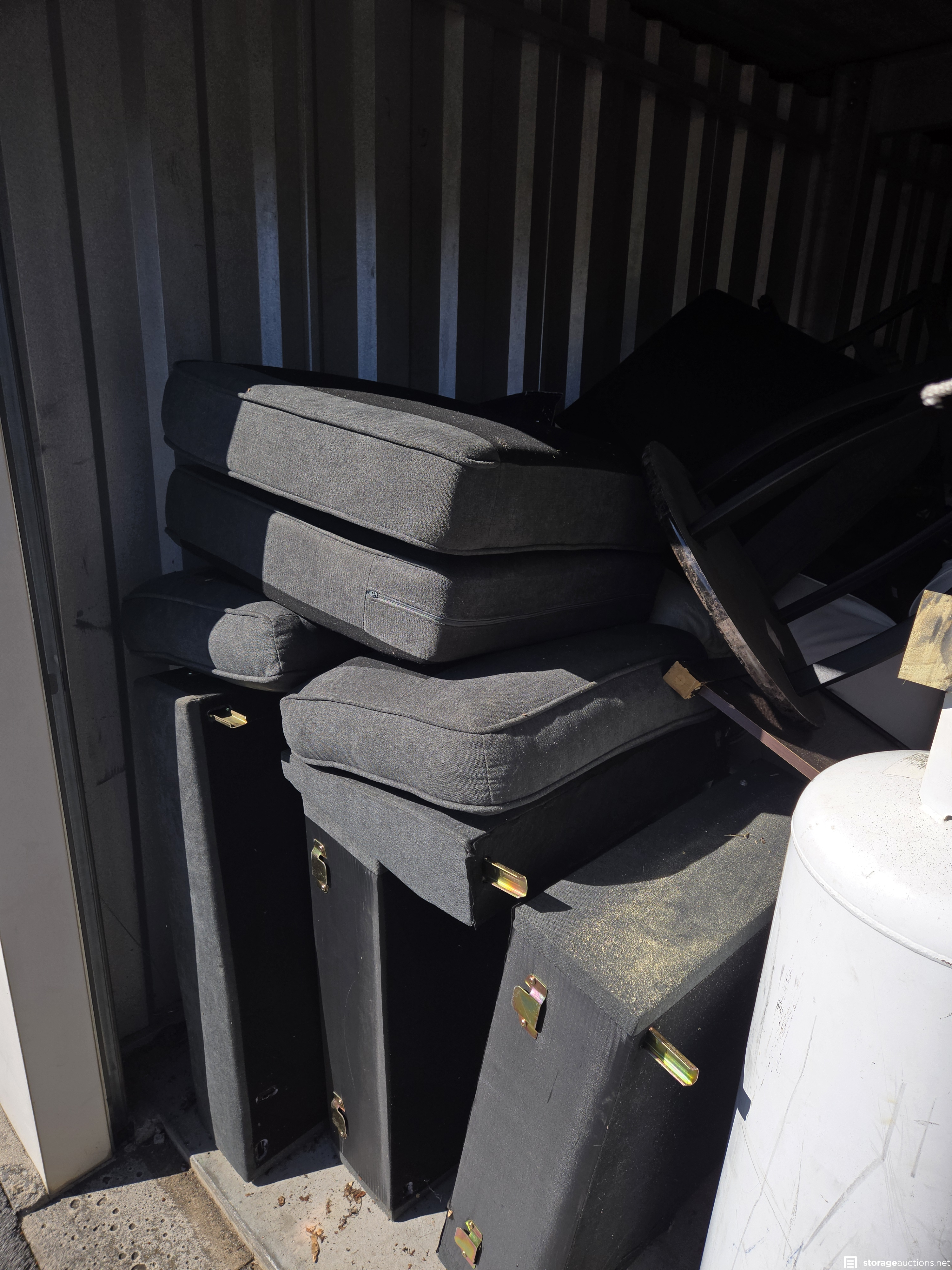 Sectional sofa, tool chest, some tools, propane tanks, dolly