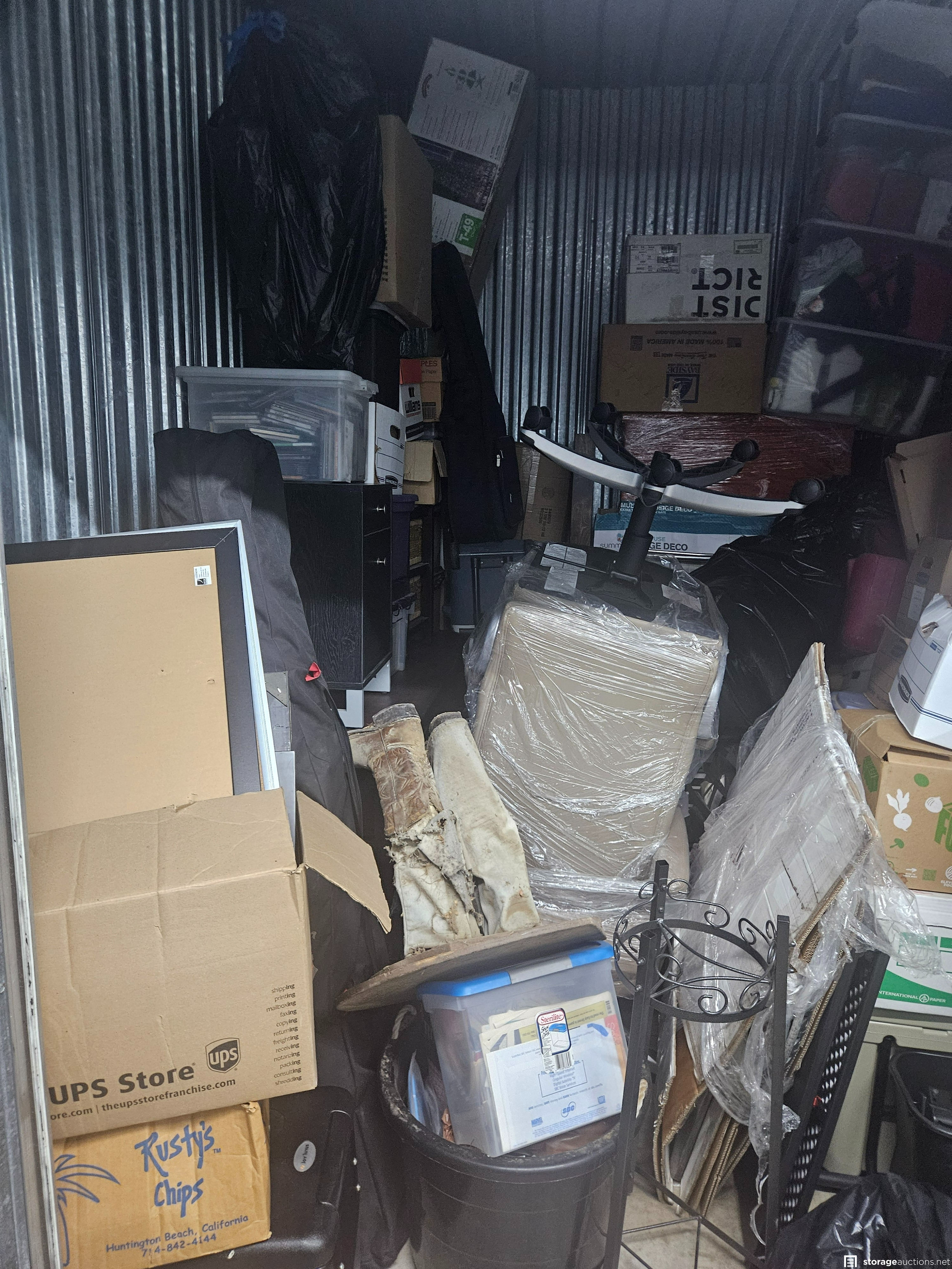 Additional Terms: VERY IMPORTANT - READ BEFORE YOU BID: Contact the facility immediately at (949) 586-3364 when the auction ends to arrange payment for and pick up of the unit contents. Buyers must be at least 18 years old to bid. You must provide a valid Photo I.D. to the Site Manager. Immediate payment is required prior to gaining access to the unit. Sales are final and bids are for the entire unit (unless otherwise noted). A refundable $200 cash cleaning deposit will be required. A valid credit card maybe required in addition to the cash deposit to ensure unit is completely emptied. Smoking is prohibited on the property. No pets allowed at the facility. You must bring your own lock to secure the unit. You must remove all contents and broom sweep the unit within 48 HOURS of payment. Any personal items found are to be delivered to the office to be returned to the previous tenant. Personal items are considered: family photographs, birth or marriage certificates, tax documents, cremation ashes, etc. Any damage caused by the buyer or buyers associates while on property is the buyer's responsibility. The buyer is responsible for the cost of replacement or any repairs. Vehicles are not sold as part of the auction. Anything unseen, or unknown, discovered in the unit with a VIN is not part of the auction. No title is obtained or will be turned over to the winning buyer. Anything that is sold is considered as parts. Federal law prohibits the sale of alcohol, tobacco, firearms, explosives, and controlled substances. These items must be surrendered to local law enforcement. The buyer can then claim, if legally allowed, from law enforcement at their discretion. You are not allowed to use the on-site dumpsters. If you would like to rent the unit after the auction, the manager can assist you. Please conduct all business pertaining to purchased goods off site. No sales are to take place on the property. Anything being sold needs to be processed off site. No online listings may be made with the property name, address, phone number, images, or likeness. Please advise the manager once you have completely emptied the unit. The manager will inspect that the unit is clean and then refund your cleaning deposit. Please respect the property rules, managers, tenants, and other buyers at all times. Thank you! FACILITY ONLY ACCEPTS CASH PAYMENTS OFFICE HOURS FOR ACCESS (Monday - Saturday 8:30AM - 5:30PM Sunday 10:00AM - 3:00PM)