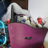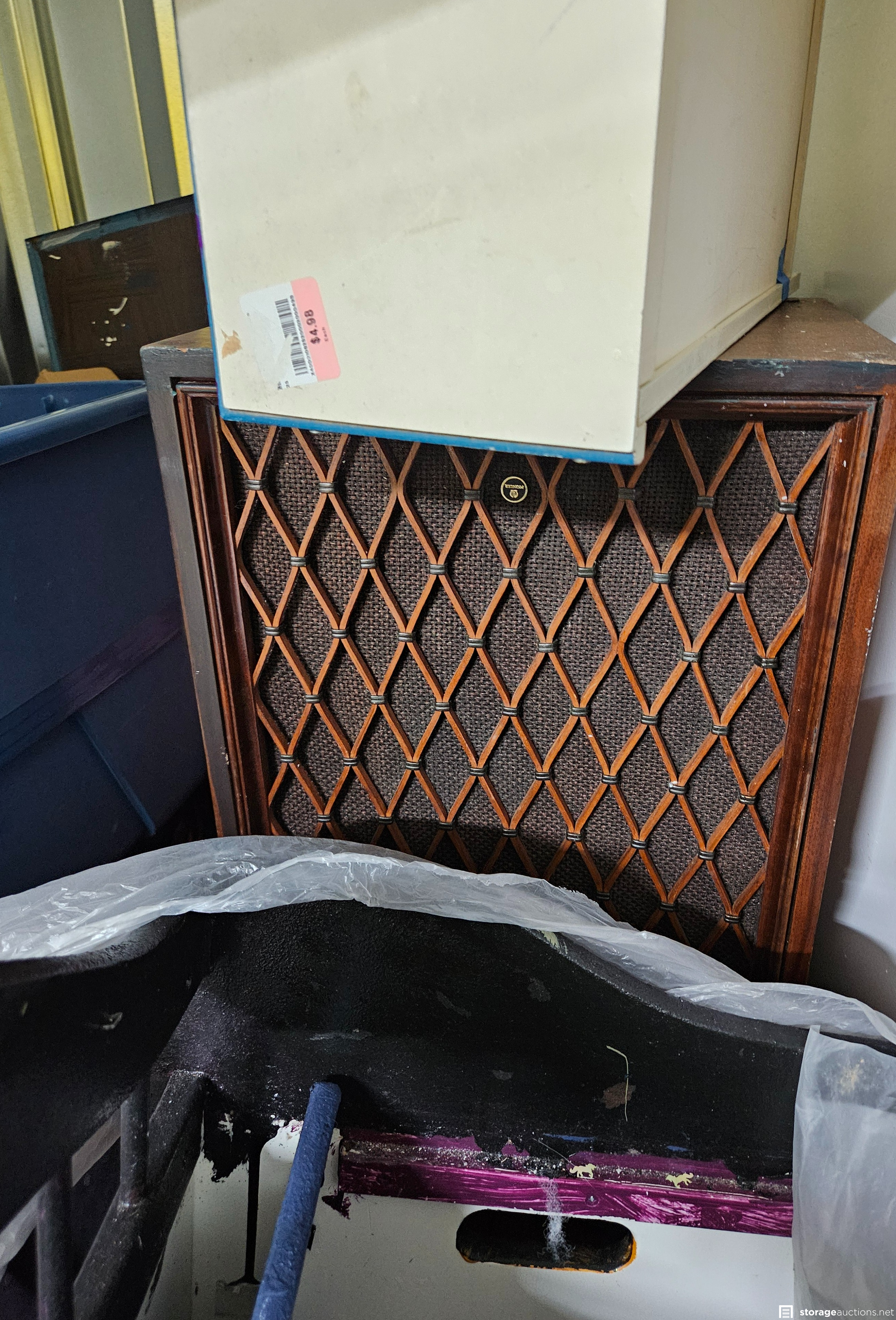 Art, boxes, totes, luggage bags, backpacks, toy box, Pioneer speakers, stereo, black light, decor, throw pillows, clothing, shoes, tool boxes, LED light strips, TV tray