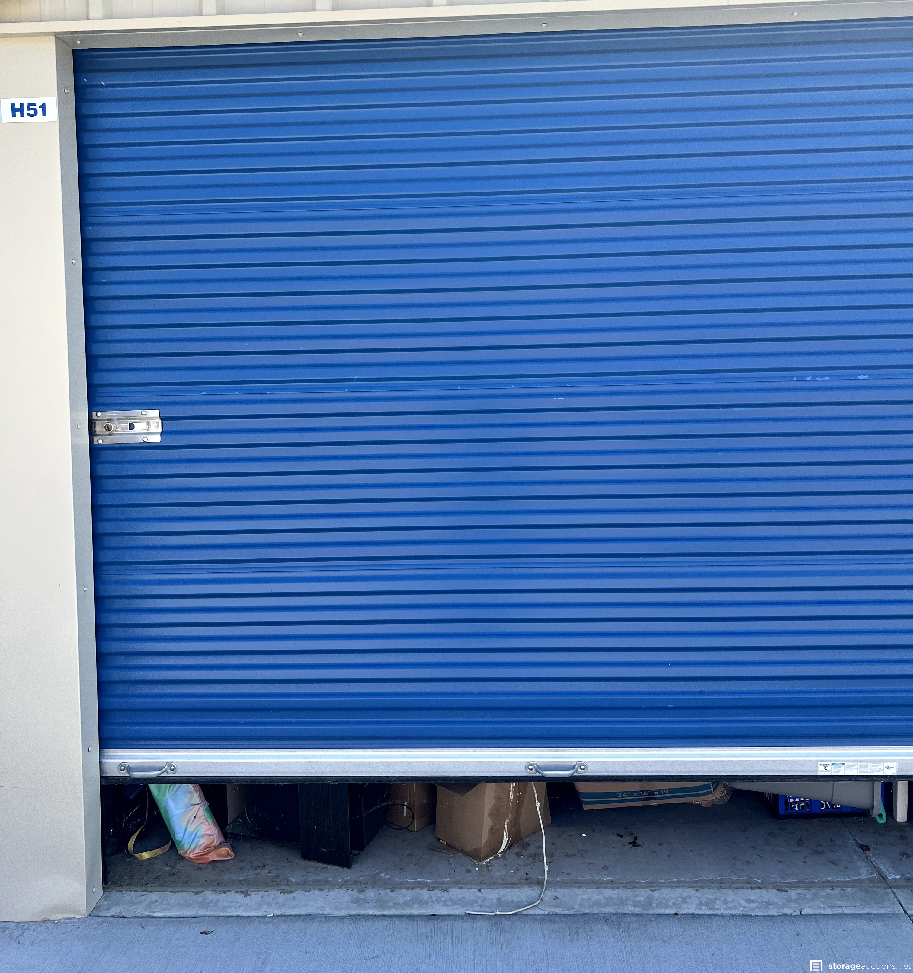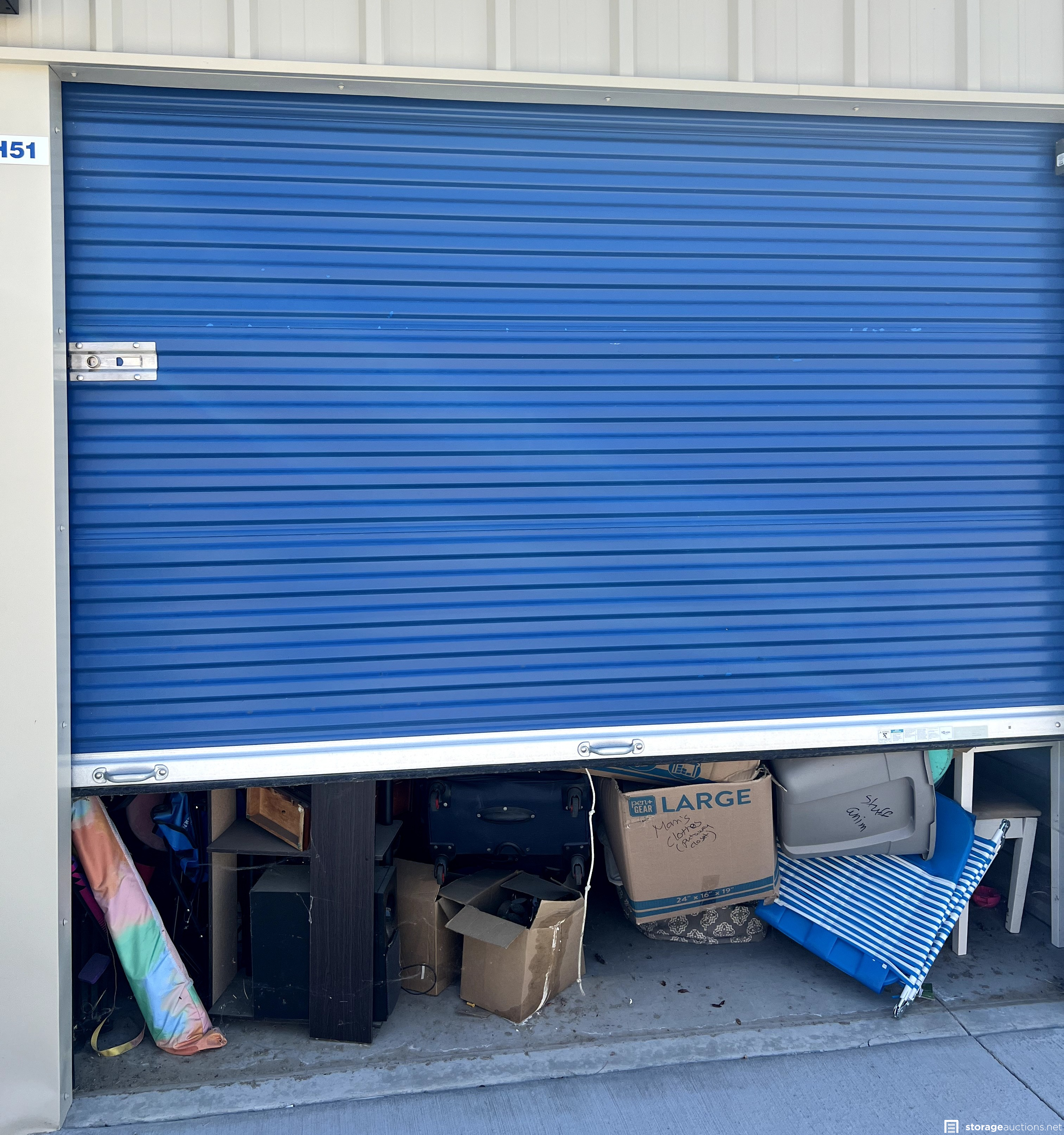 Additional Terms: **NOTICE - Defaulted tenant has legal right to cure account, thus cancelling the auction, up until cash payment is received from the winning bidder.** Buyers must be 18 years old to bid and pay winning bid. Winning bidder must pay within 48 hours in person. Cash or money order only. $200 deposit. If paying with money order, deposit must be on a separate money order. Unit must be cleaned out within 72 hours after payment. Deposit will be returned after unit is cleaned out. If unit is not cleaned out after 72 hours, unit will be considered abandoned and deposit will be kept by the storage facility. Must have a paid confirmation and valid photo ID to pick up contents of unit. All sales are final, all sales are AS IS for the entire content of unit, unless otherwise specified. Items containing personal information found with in unit must be returned to the office upon clean-out of the unit. No dumping, No pets allowed. All auction unit(s) are subject to cancellation by the storage facility.