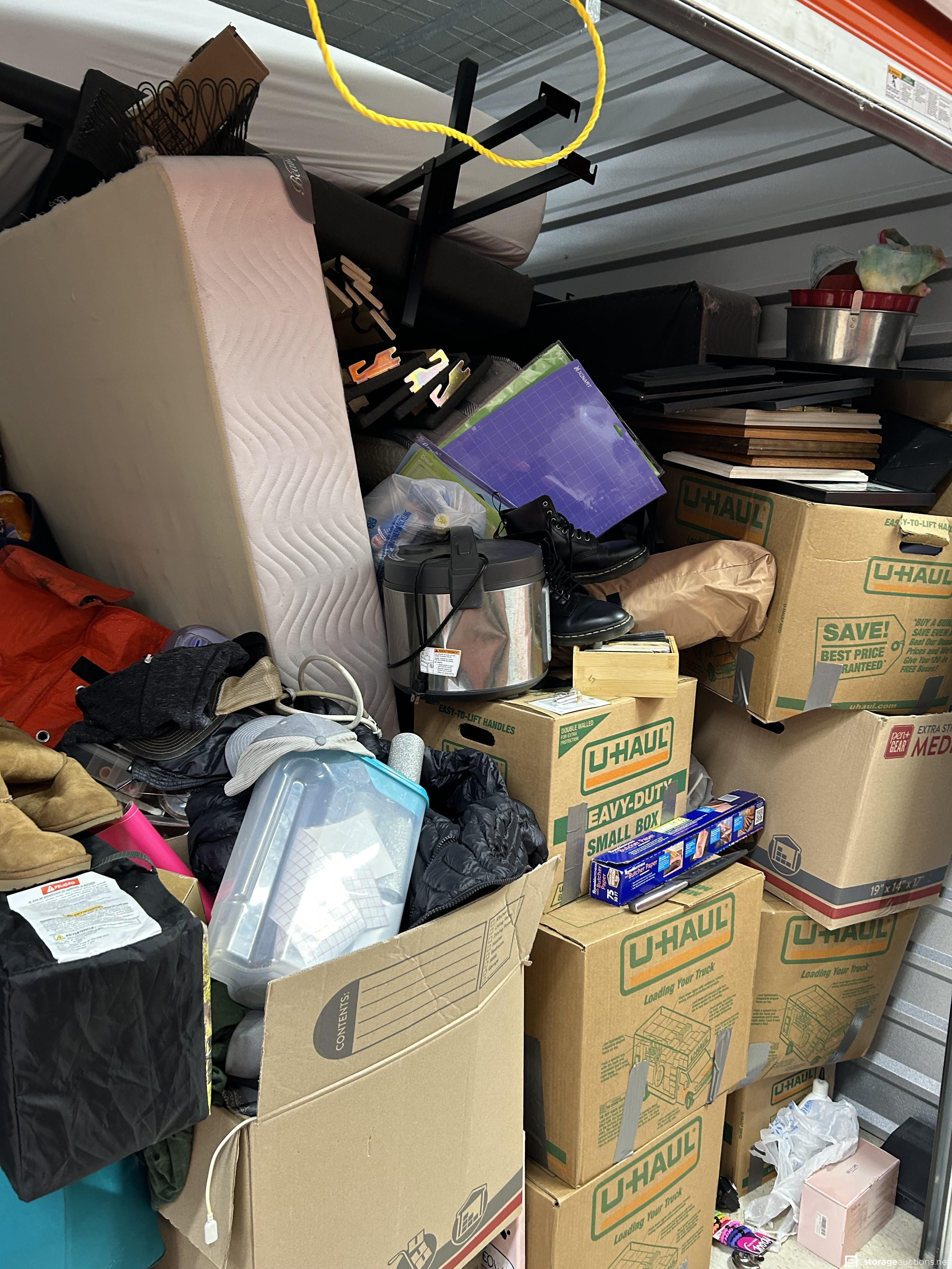 Additional Terms: 72 Hour clean out. No dumpster available. $300.00 clean fee. UNIT MUST BE CLAIMED BETWEEN THE HOURS OF 7AM TO 4PM. MUST SPEAK TO MANAGER OF LOCATION. Unit is forfeited after 72 hours of no clean out. No refunds . U-Haul requests that all items of a personal nature be boxed at the time of removal from the unit with the unit number on the box (photos, home movies, personal papers/records) and returned to the office. U-Haul also request that all items marked or identified as U-Haul equipment be returned to the office when unit is emptied. Everything must be removed from unit within 72 hrs failure to do so will result in denied access to Uhaul Auctions in the furture.