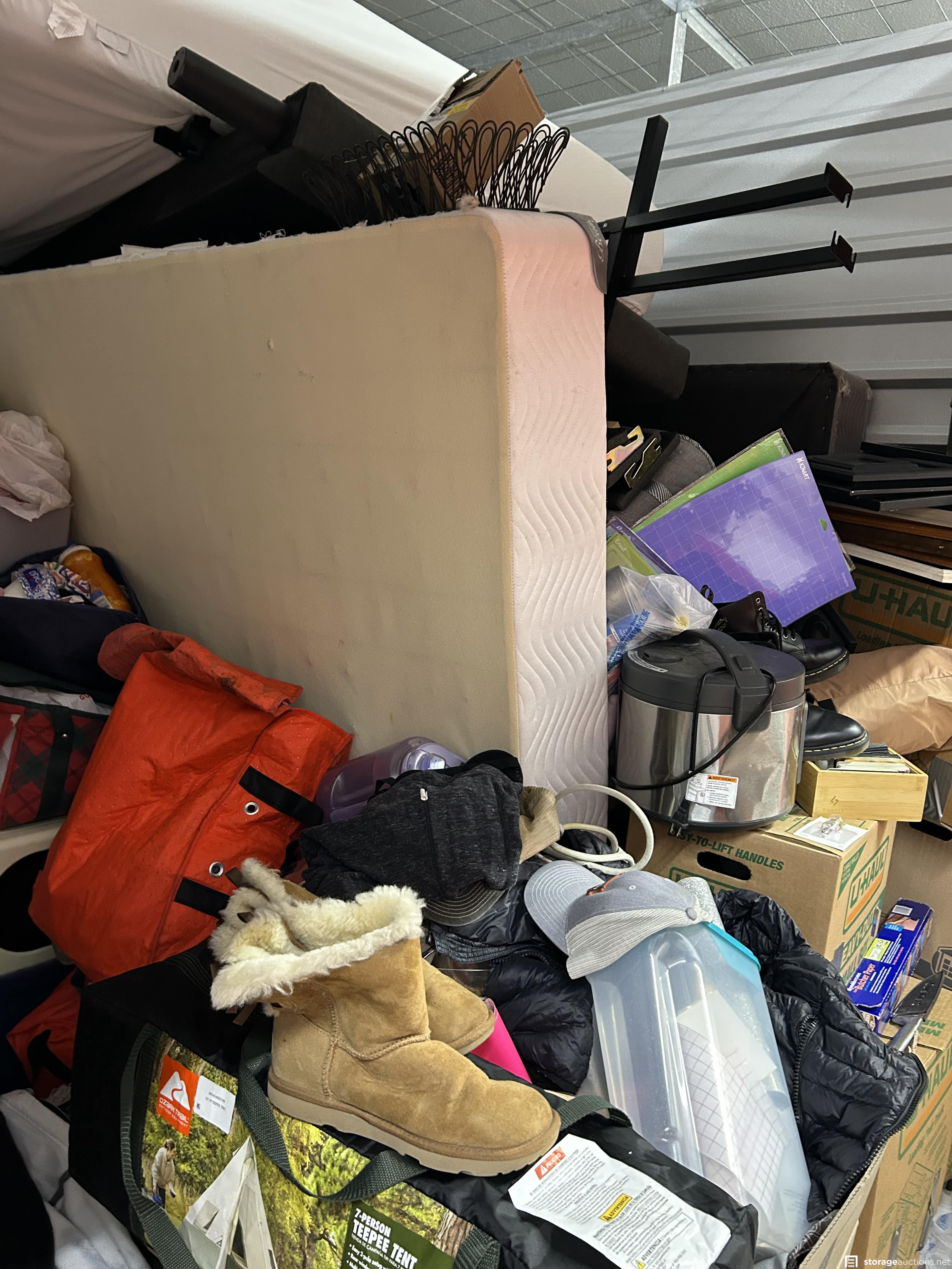 This unit has boxes, mattress, frame, tent