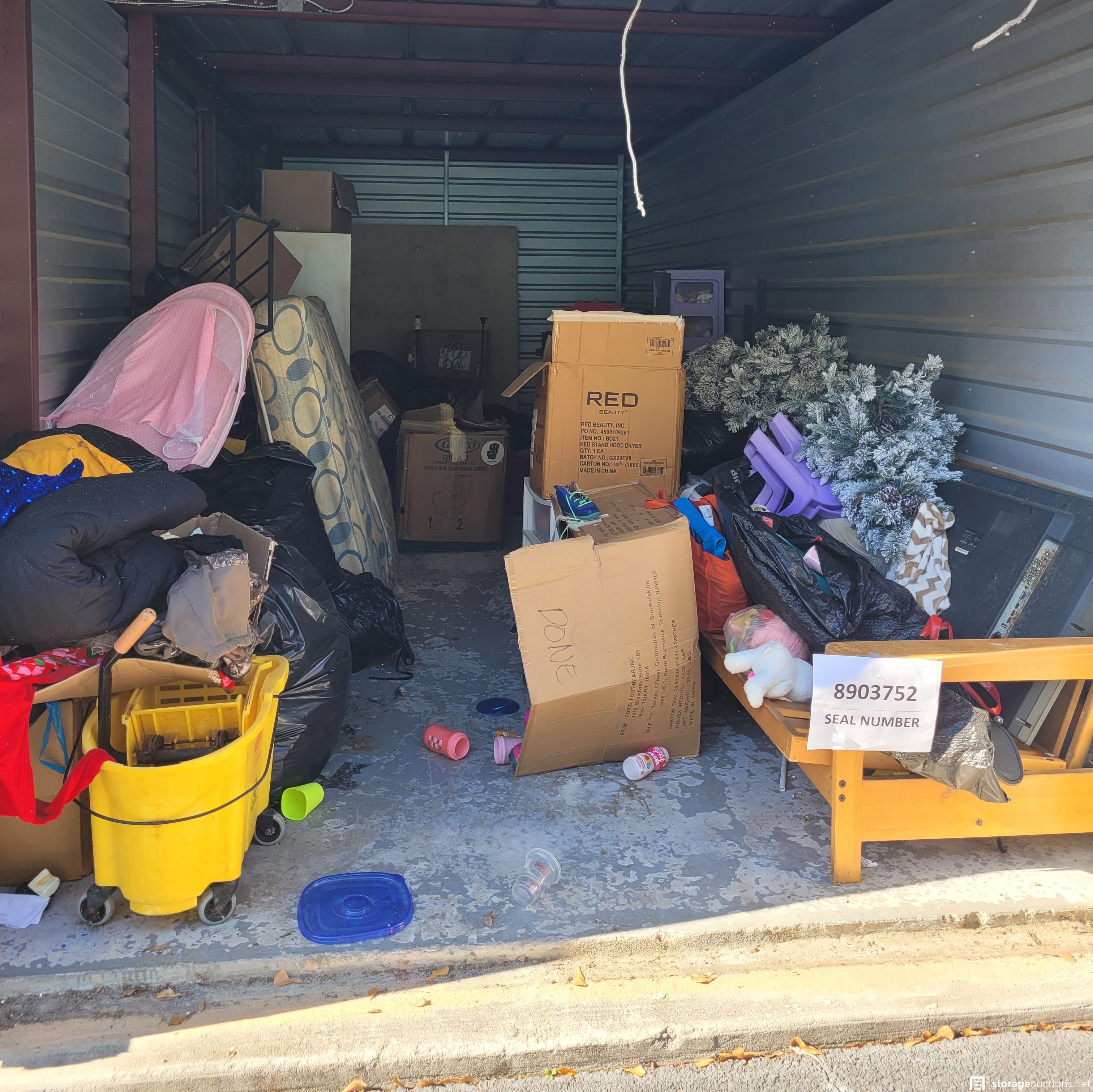 Additional Terms: All units must be paid for at the time of sale. Credit card and Money Orders will be the only forms of payment accepted. No checks or Cash. No one under the age of 18 is allowed to attend the sale. Each person attending must agree to follow all Rules and Regulations of the sale. The landlord reserves the right to bid at the sale. All purchased goods are sold "as is" and must be removed by 5:00 p.m. on the day following the sale. Buyers must provide a current, original or a photocopy of their original resale permit at time of sale in lieu of sales tax. This sale is subject to cancellation in the event of settlement between landlord and obligated party