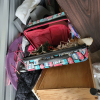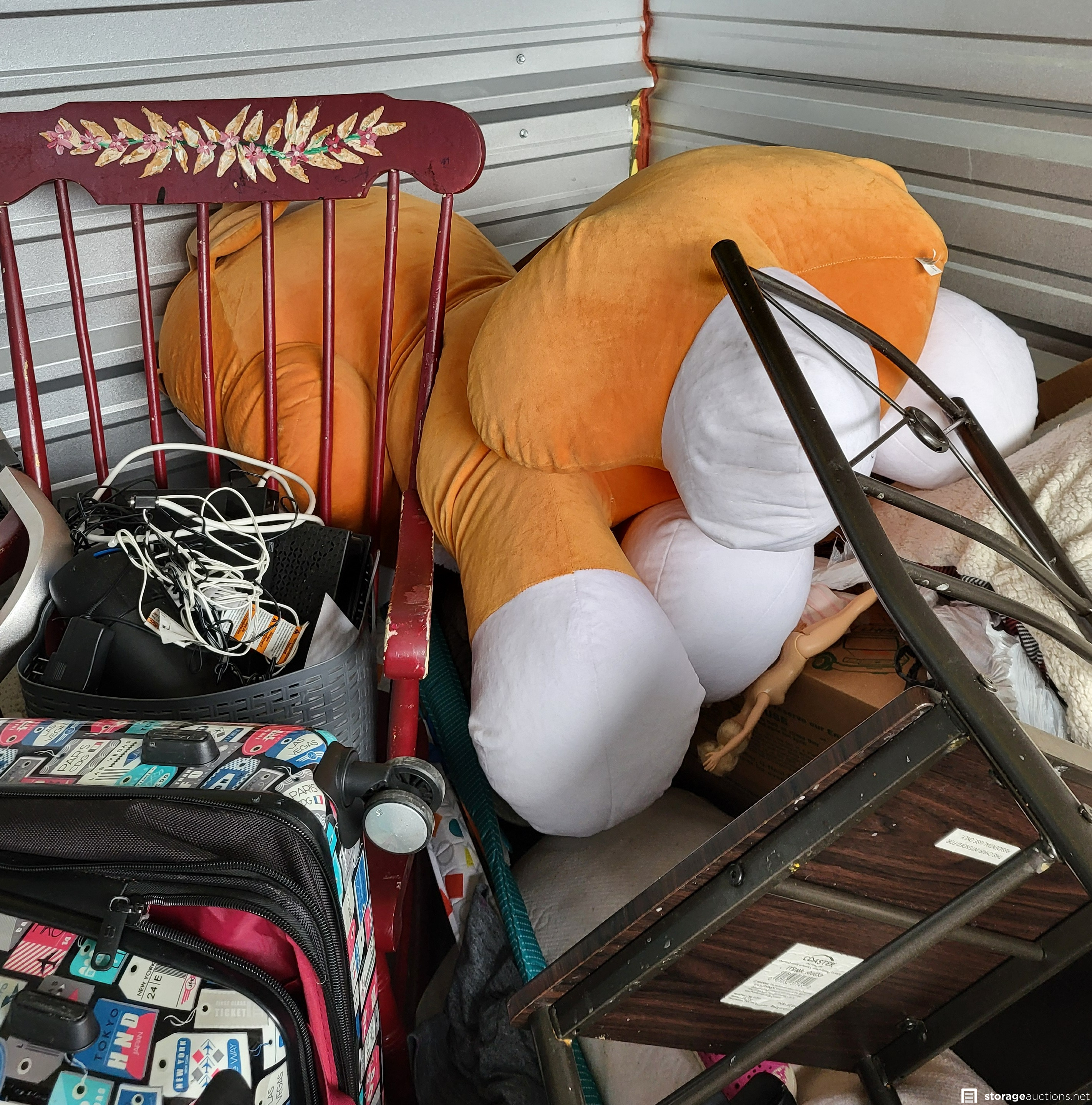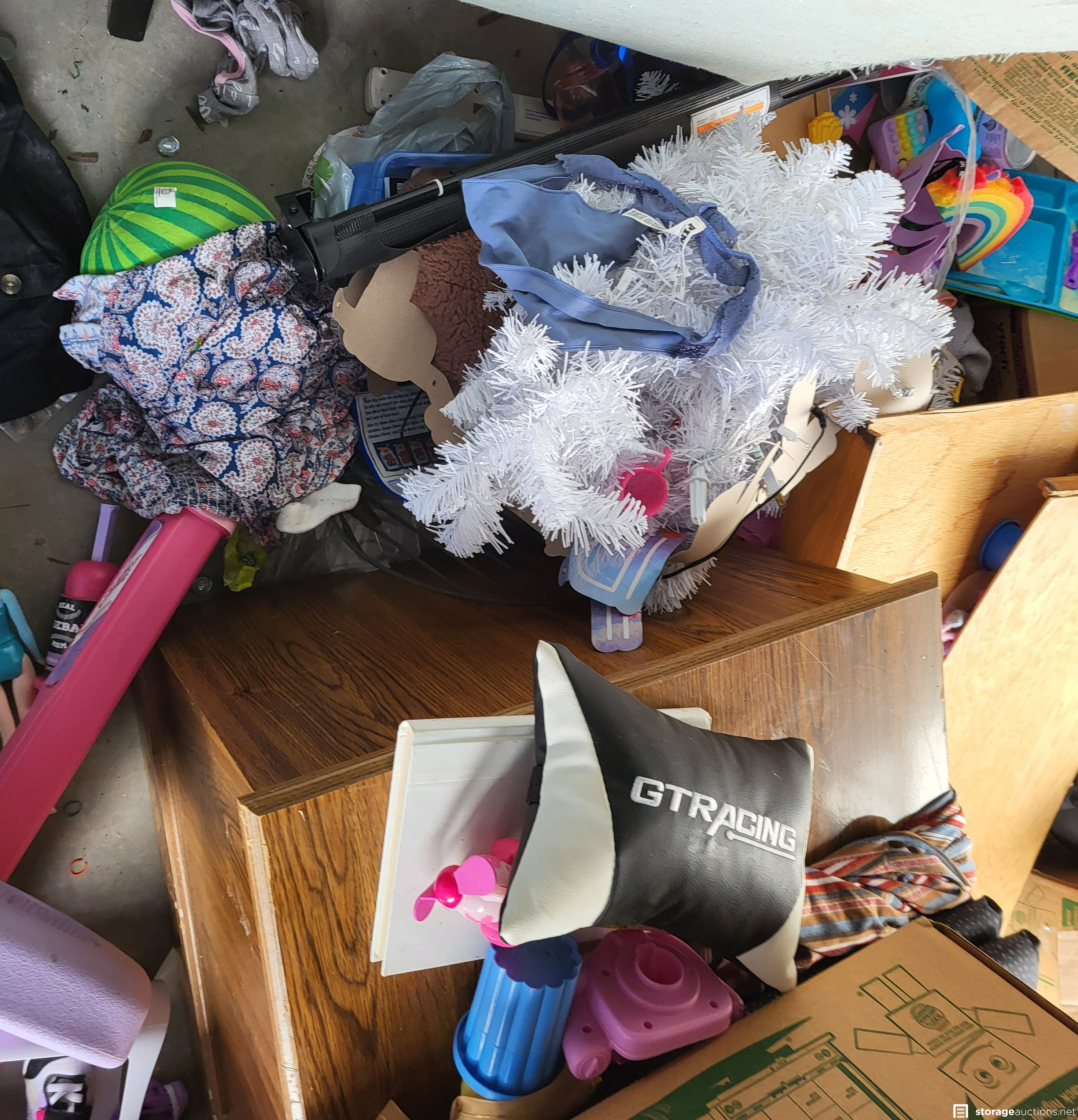 Dresser, chairs, toys, artwork, various boxes and totes.