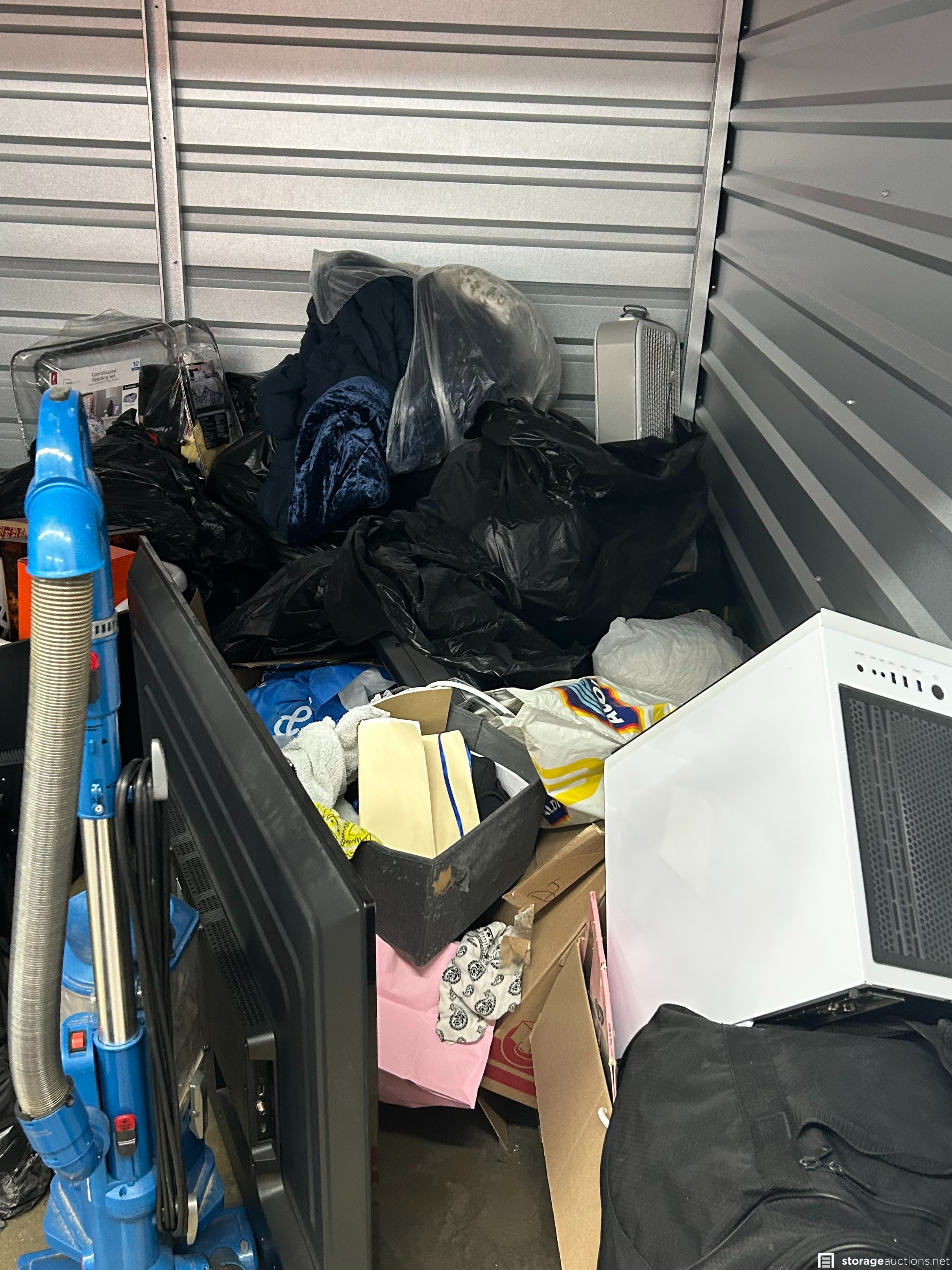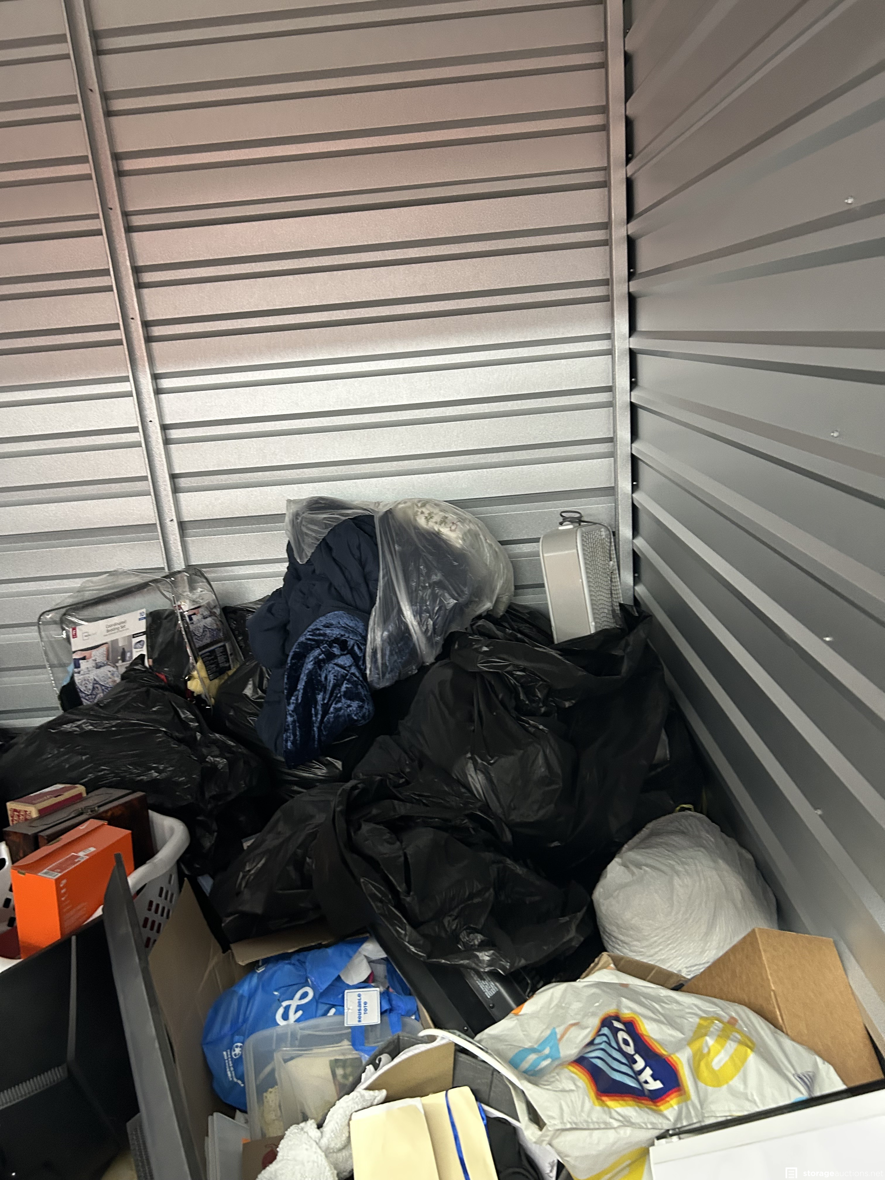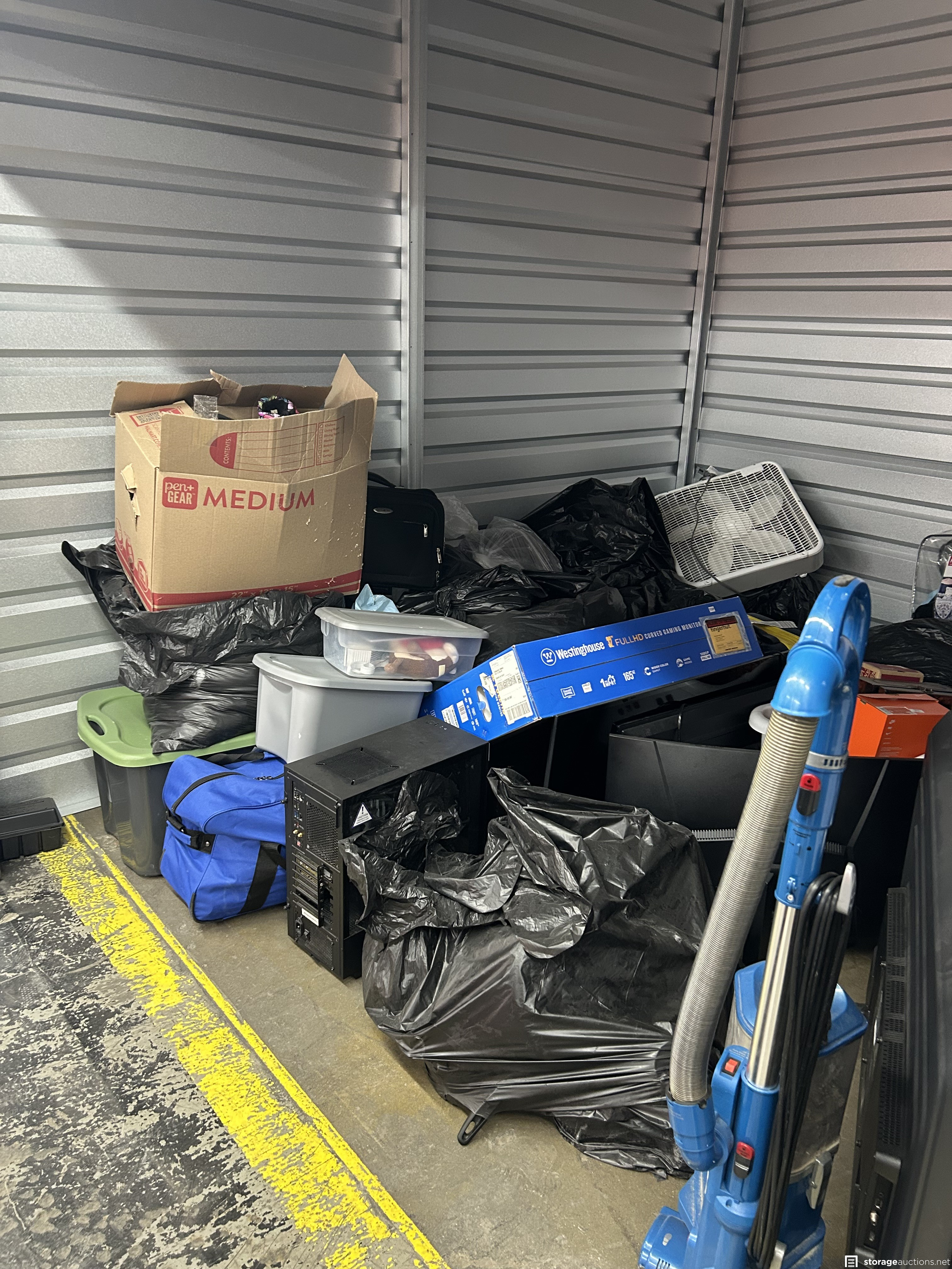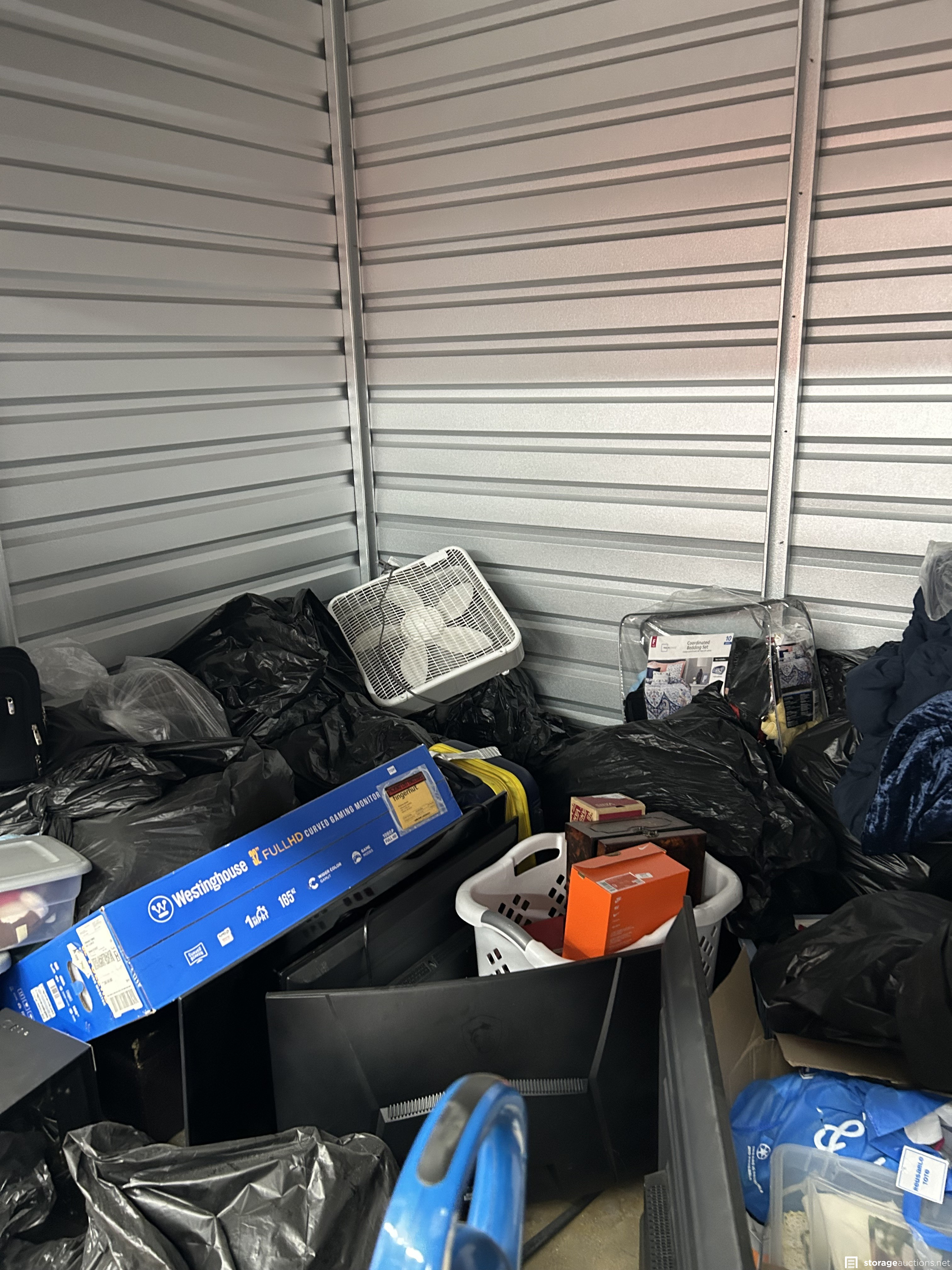 This unit has computer, bags, totes, fan, computer