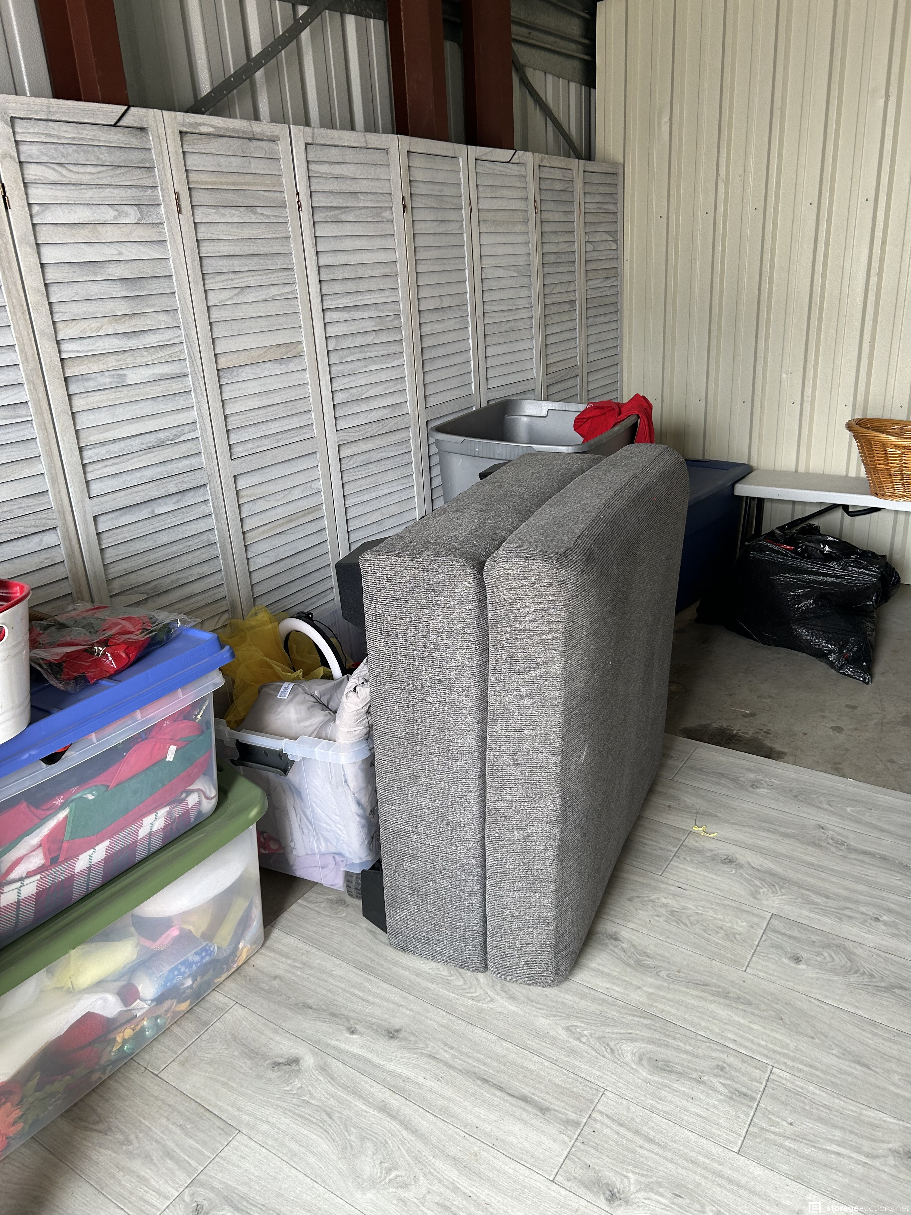 This unit has couch, totes, lamps, ottoman