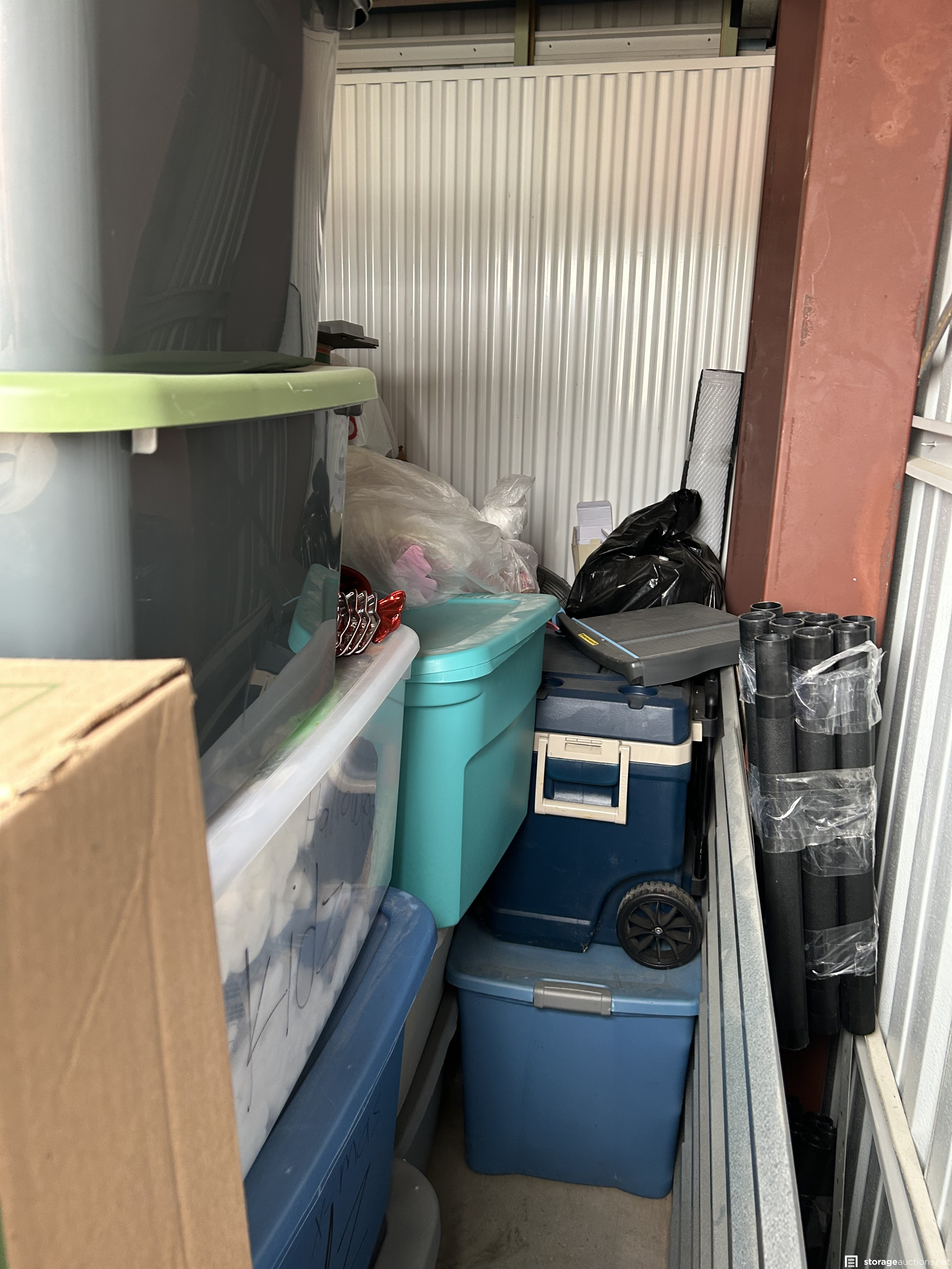 This unit has totes and boxes