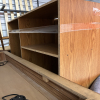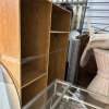 This unit has a bed frame, shelves, chairs, table, hutch